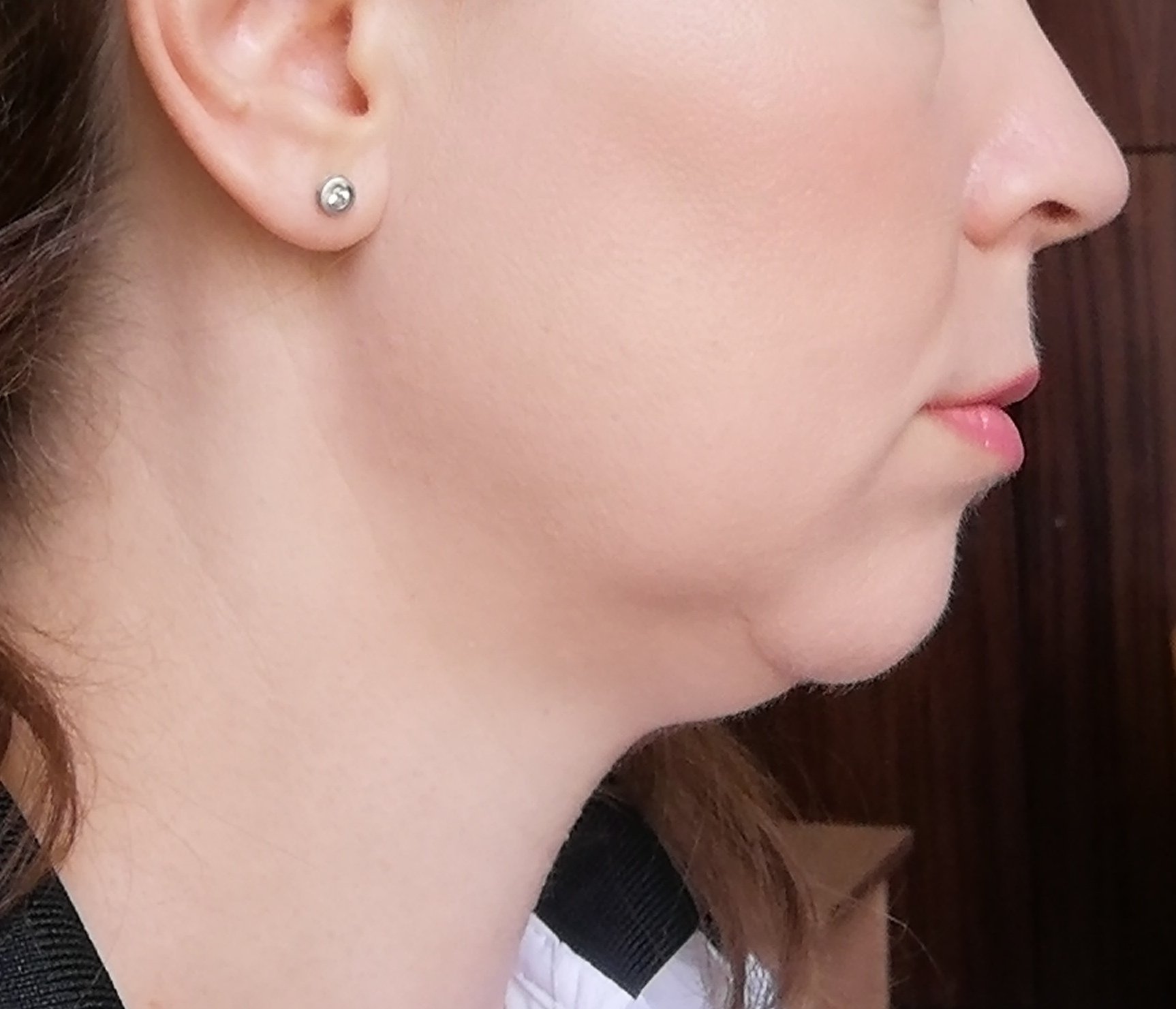 Тази снимка е по ясна, нямате толкова кожа, колкото изглеждаше. Слабо лице и загуба на обем, може да опитате да попълните с филъри. Шията ви  е добре🌸