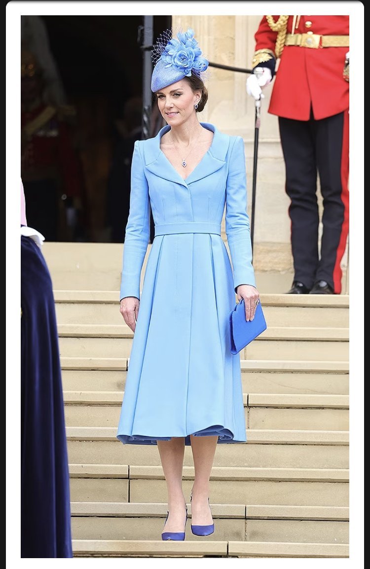 Има информация, че Кект ще носи рокля-палто на Catherine Walker, залагам на сините ѝ такива.