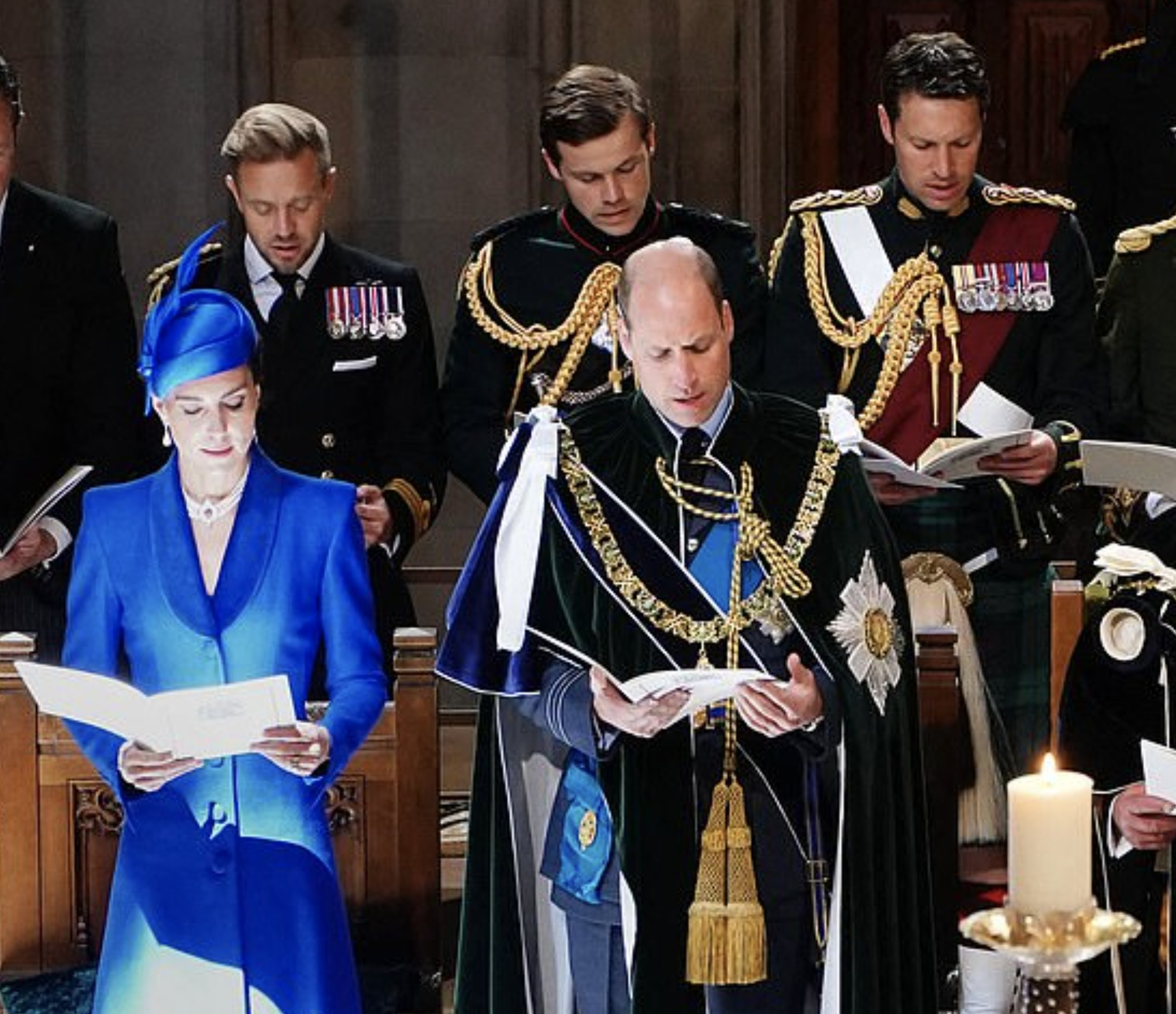 Какви симпатични мъжаги има зад Кейт, до колкото знам са служители на Чарлз и на коронацията в Лондон пак ги бяха забеляали колко са симпатични в униформи.