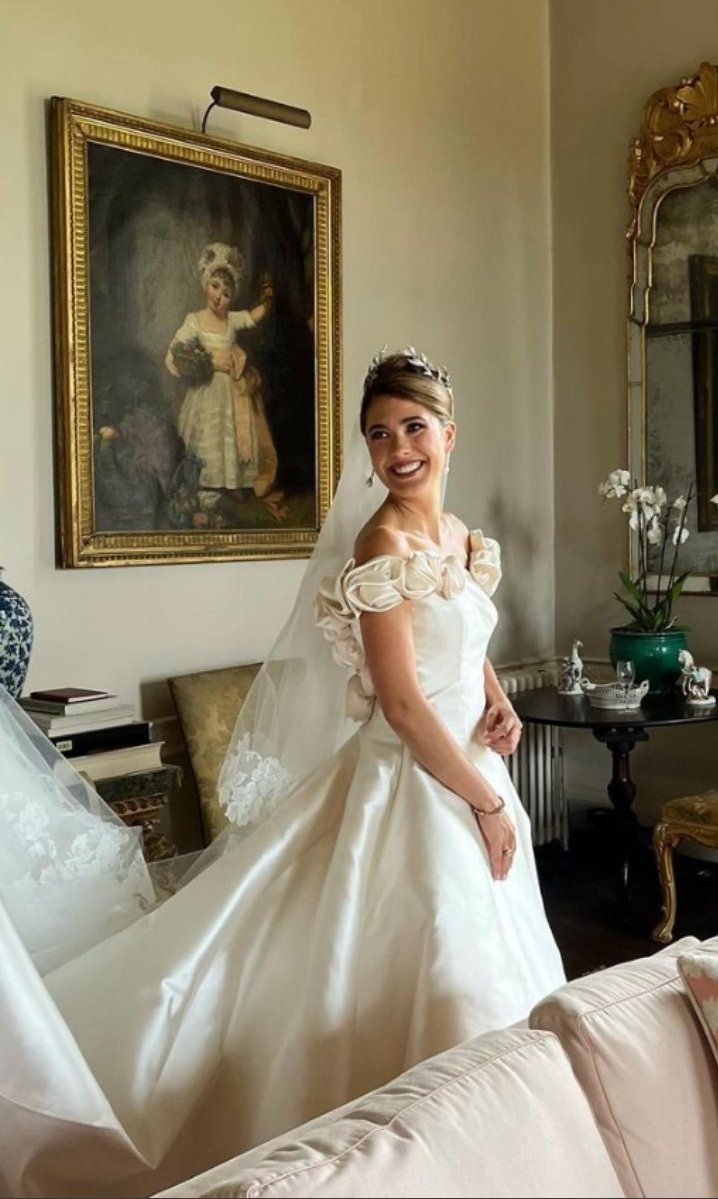 И тя е с преобладаващи декоративни елементи на гърба за украса, като при последните 2-3 булки. Явно е някаква нова мода на богат гръб въпреки воала отгоре му.