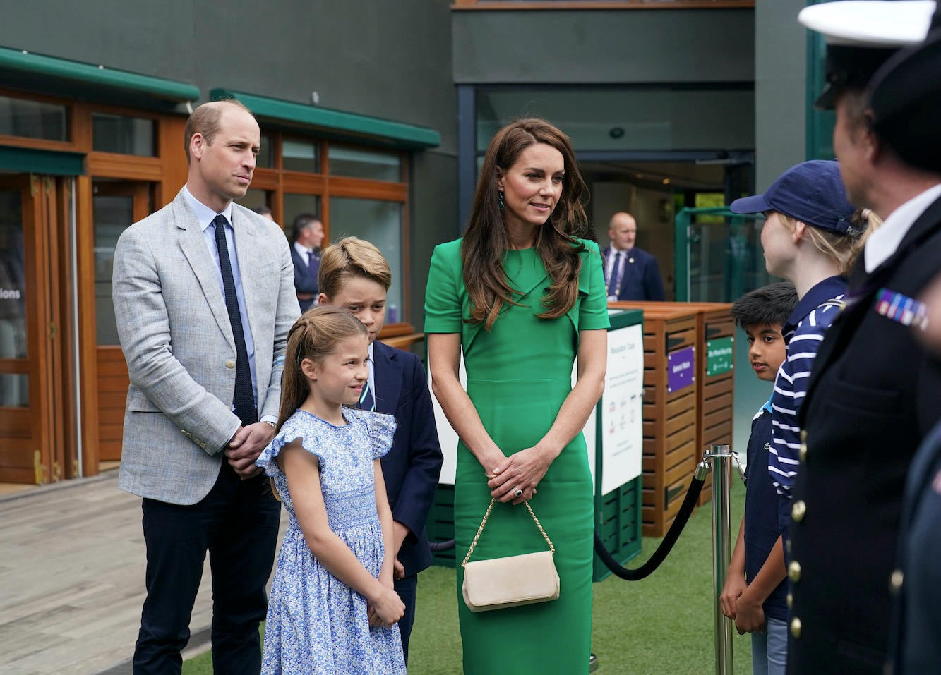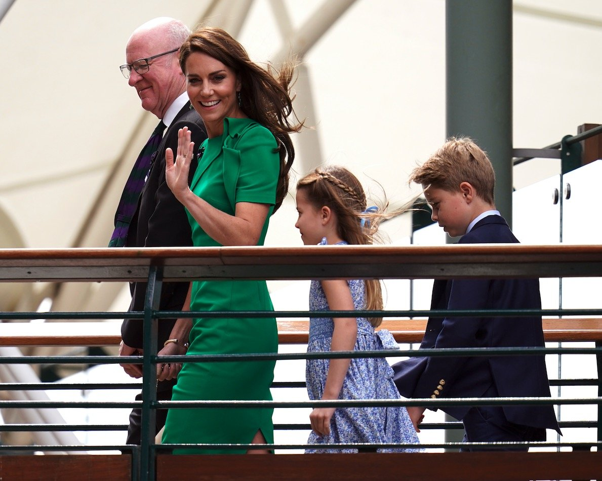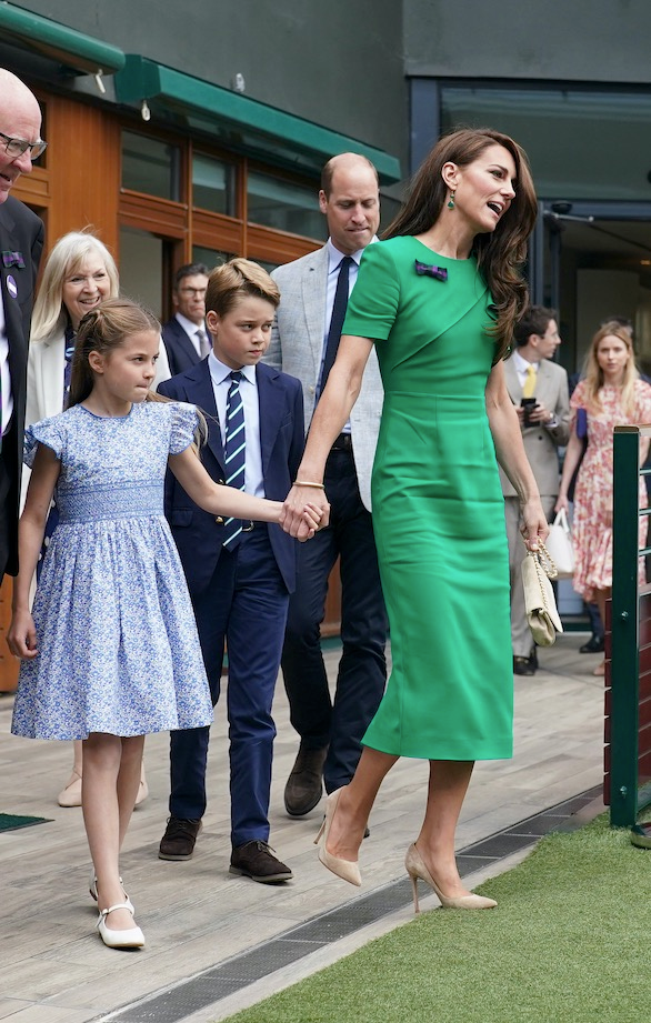 Кейт и Уилям са с Джордж и Шарлот днес на Уимбълдън. Роклята ѝ е на Roland Mouret, страхотна е и много елегантна.