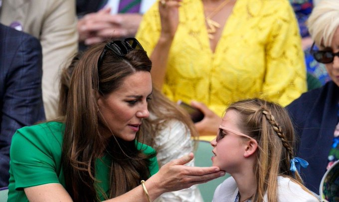 Страхотни са Уелс днес на Уимбълдън - и големи и малки. За принцесата на Уелс няма какво да се каже, освен класа и стил, и грацията, с която носи всяка дреха. Прави впечатление, че не само нейните тоалети и тези на Уилям са безупречни. На всяка публична поява децата са облечени също изключително добре, Шарлот винаги е с някаква прическа.