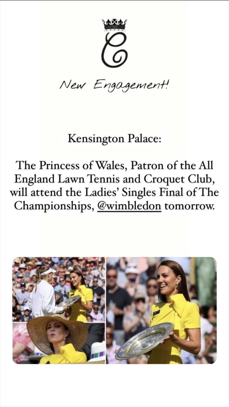 Кейт утре ще присъства на женският финал на Уимбълдън. 😊 Да се надяваме да има и интересна компания с нея.