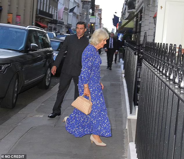 Камила е заснета как влиза в клуб Albemarle Street в понеделник вечерта и след това си тръгва няколко часа по-късно в компанията на сестра си Анабел Елиът, сина Том и 16-годишната дъщеря на Том, Лола.