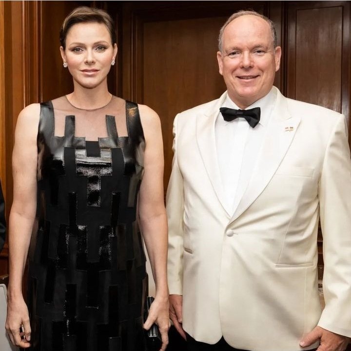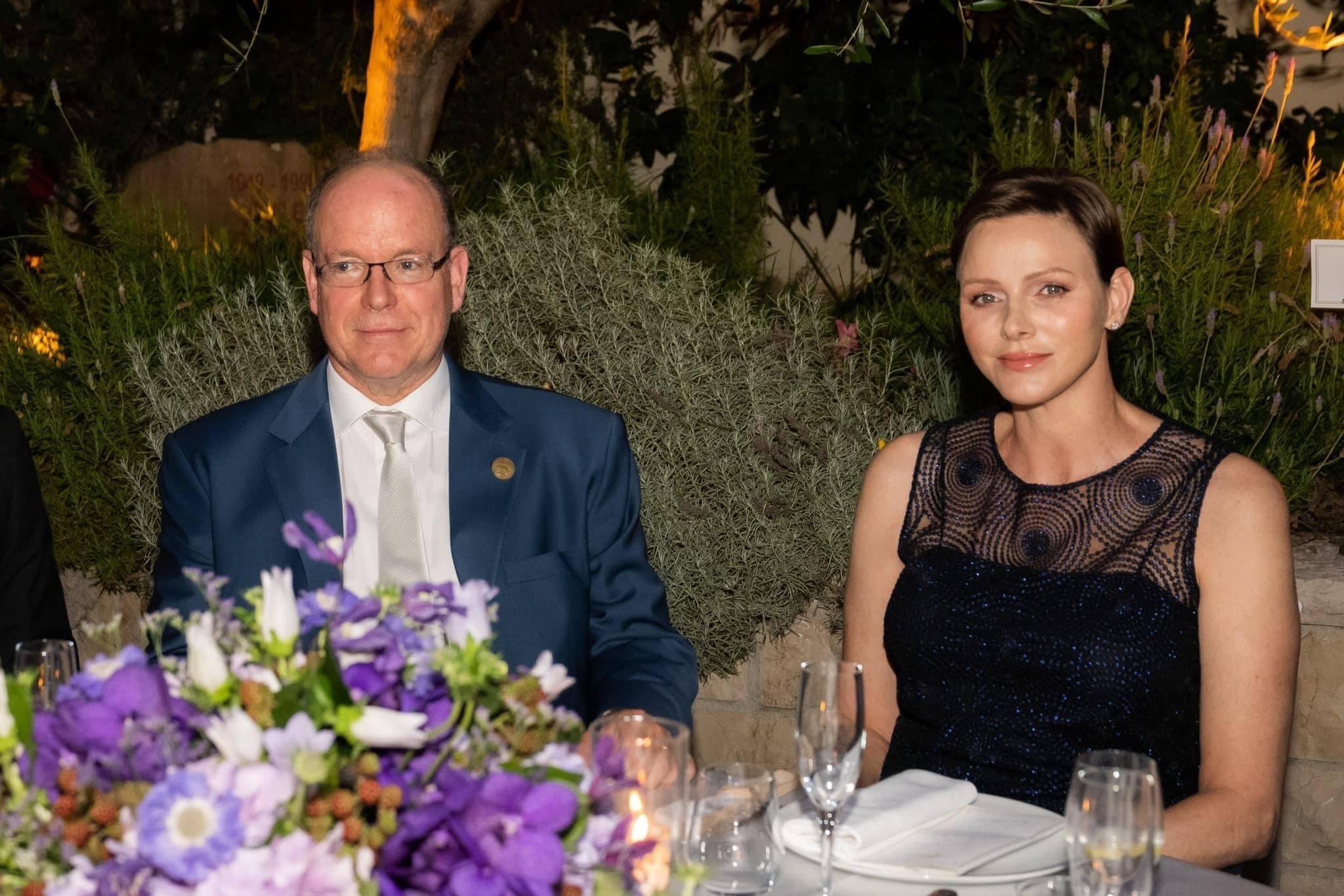 Шарлийн и Алберт на традиционна вечеря на свещи  организирана от кметството. Много е хубавка на тази снимка.