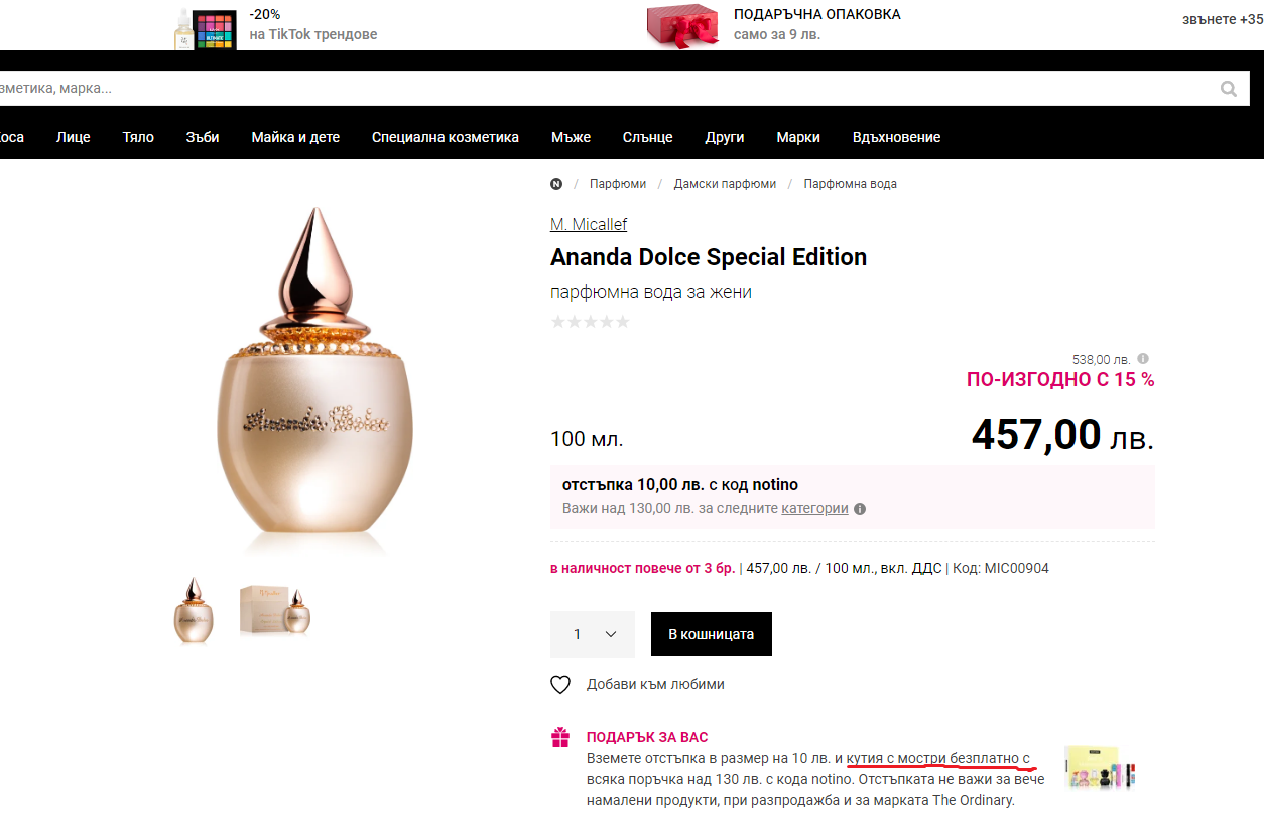 Пускам едно предложения от Култ Бюти сет с благини подарък към покупка. Сайтът предлага Kilian, Memo и Frederic Malle от популярните парфюмни брандове на официални цени ( тук там отстъпка)