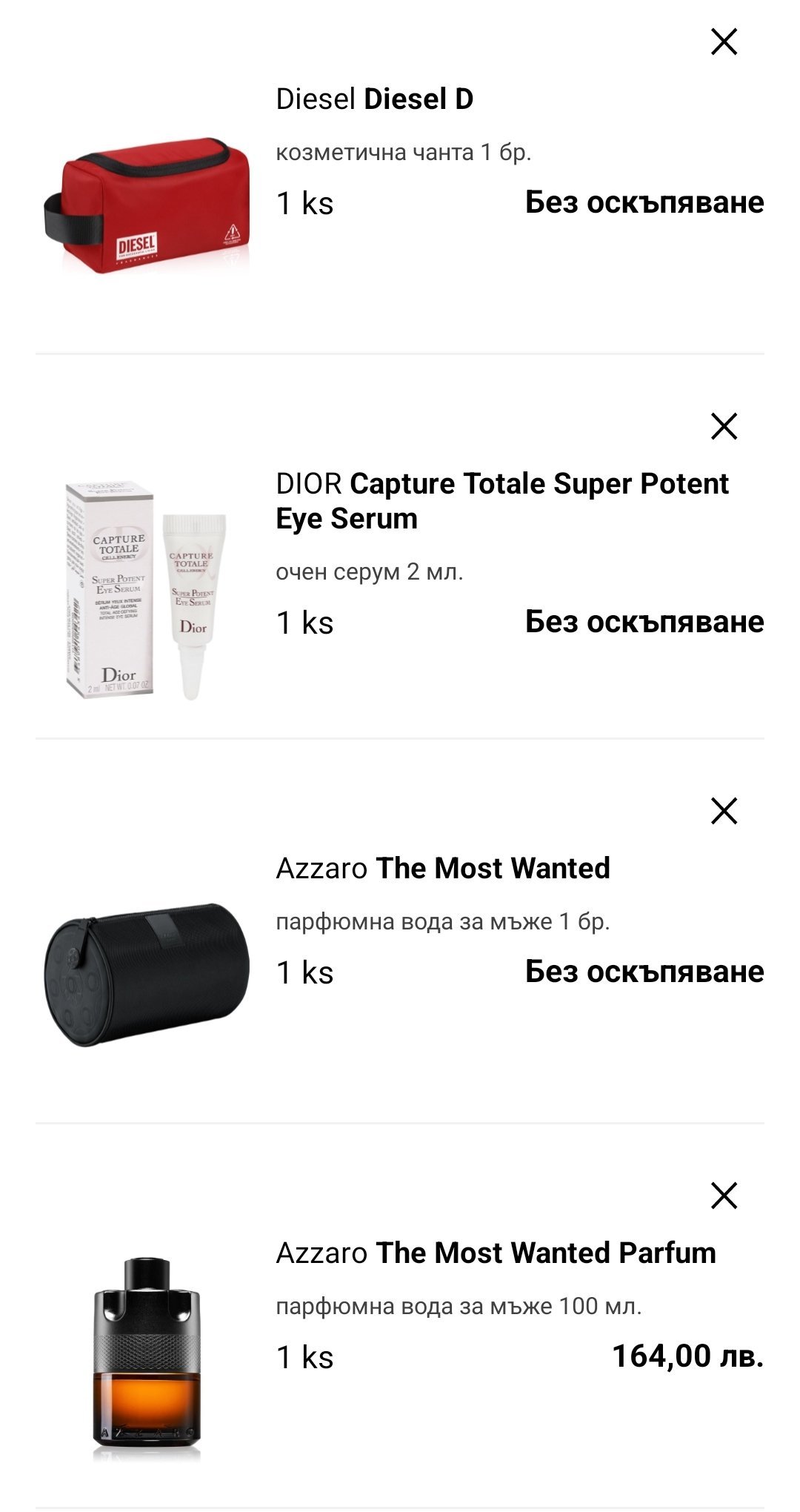 Любопитно ми е каква ли разфасовка на The Most Wanted ще изпратят от Нотино, като подарък към поръчката. Не е уточнен размер, не пише мостра. Снимката е на козметична чанта, но пък пише "парфюмна вода за мъже 1 брой"... 🙂