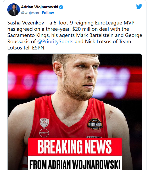 Крило на националния отбор по баскетбол - Александър Везенков, който е подписал със Сакраменто Кингс.