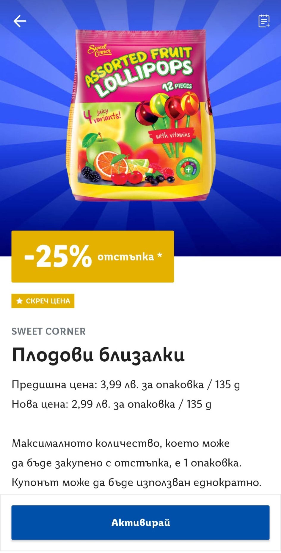 Купона за близалките е подарен.