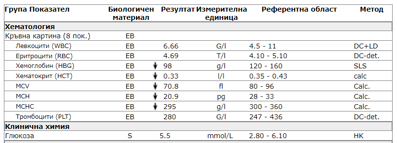 Има анемия. Докторът ще прецени за последващи изследвания и насока към специалист.