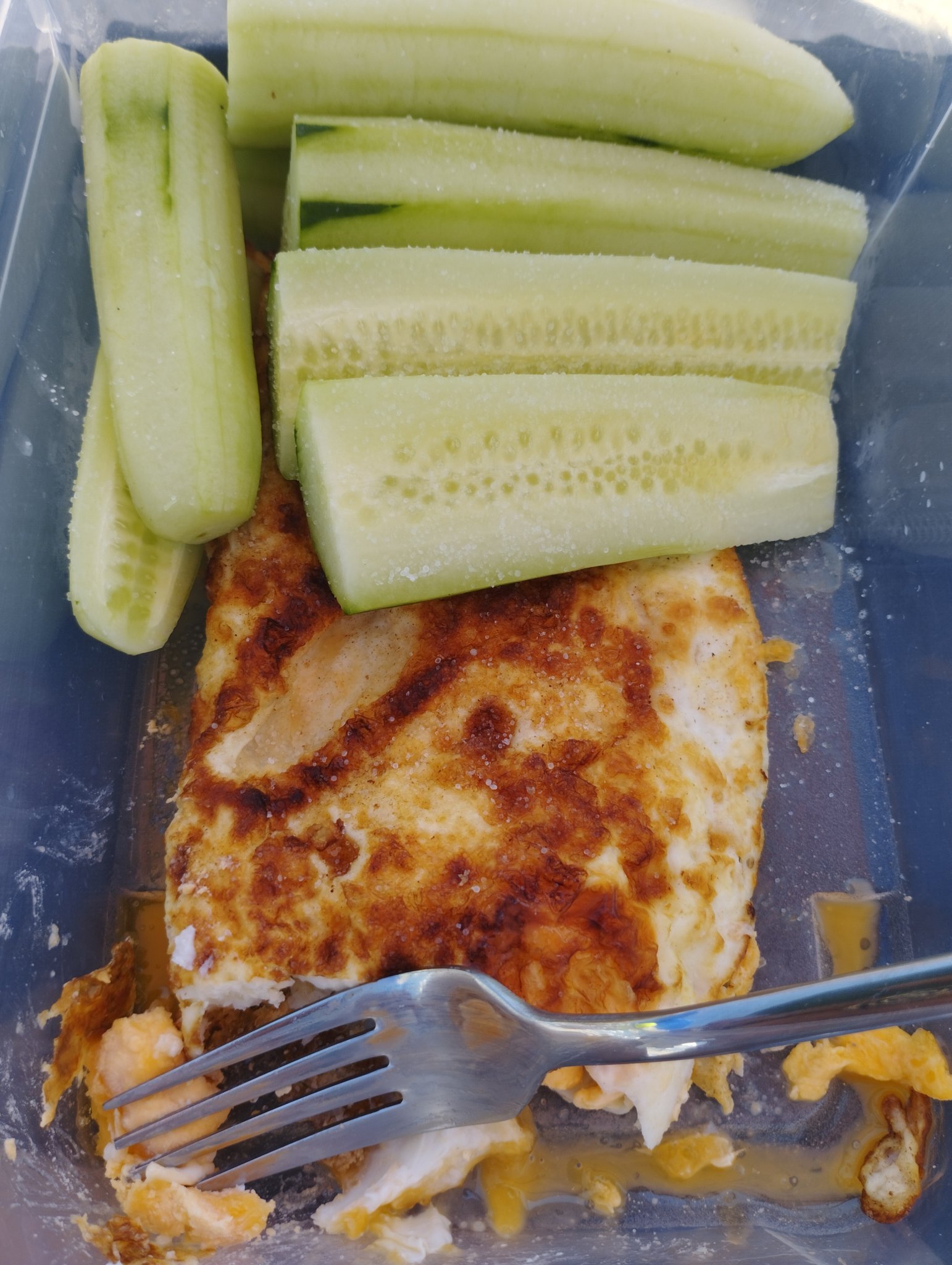 Аз току що хапнах, изпържих си сутринта последните яйчица.