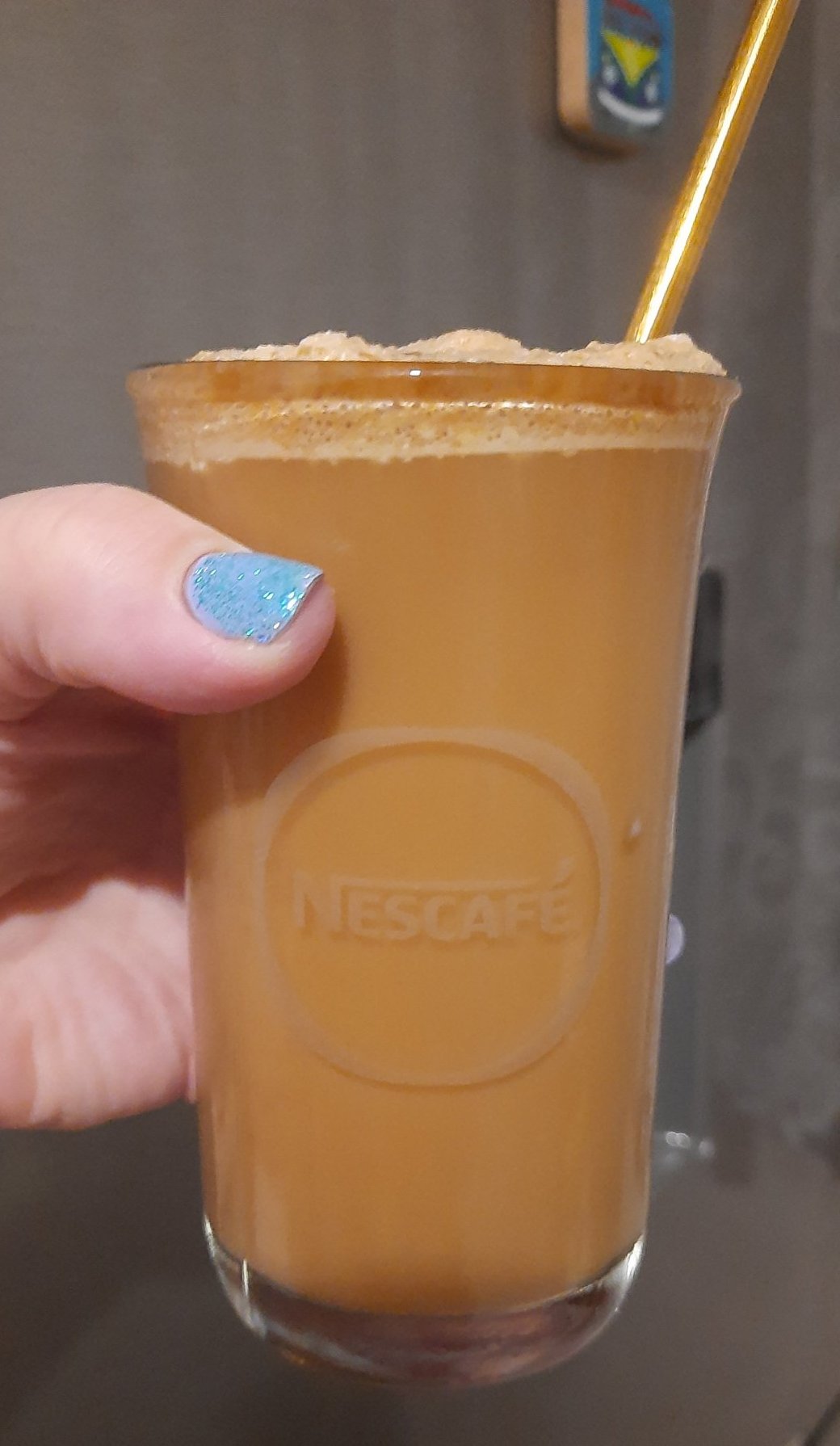 Черпя ви с едно фрапе от снощи- нещо му повредих пяната обаче, не знам как стана...и лед нямах. Но пак добре ми дойде: