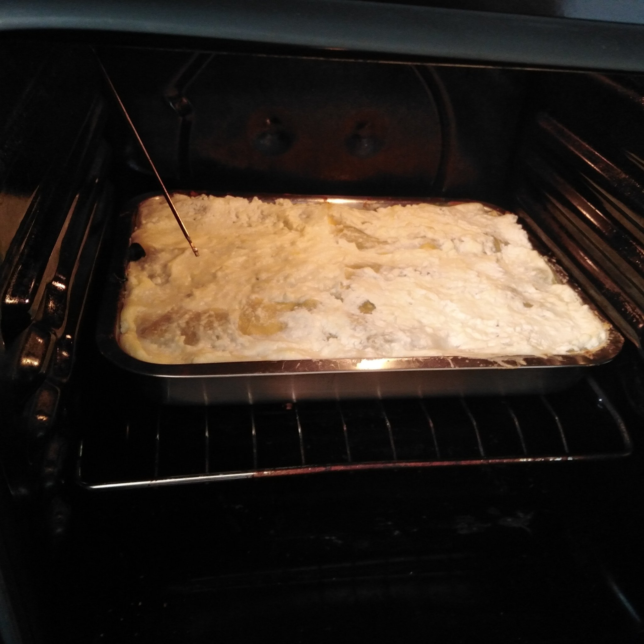 Станислава,лазаня ли е? Аз винаги тавата покривам с фолио и никога не запичам отгоре,но завършвам с доматен сос. И соса ми е повечко.