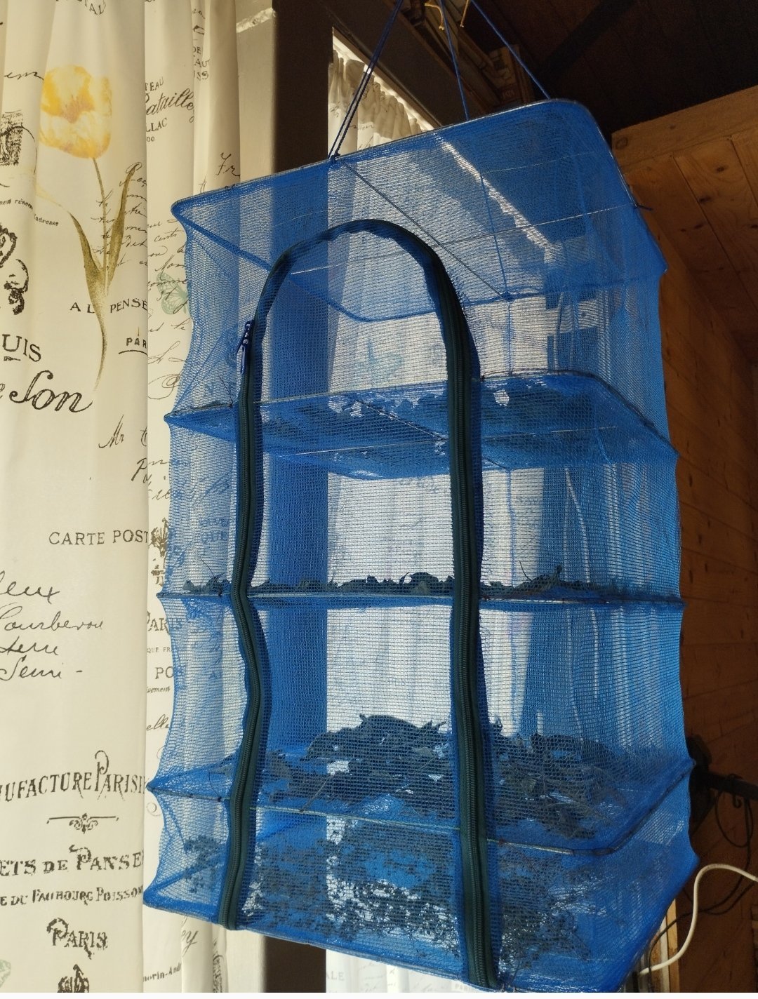 Mikkey, поисках си за РД мъжът ми да ми направи сушилня от мрежа за комари, летвички и т.н. Направих и чертеж- на три етажа, съобразен с мястото ми, така че да не ми пречи. И понеже обущарят ходи бос ми се изчака чакалото и реших да потърся в нета. Сложих ги на места, където не ми пречат.  При мен непрекъснато духа, отворено е почти целодневно от прозорци и врати на терасата, понякога съм събирала разпилени билки по пода. Така хем са защитени, хем са на въздух. Пък майсторът ми само количеството малко не му хареса Stuck Out Tongue Winking Eye