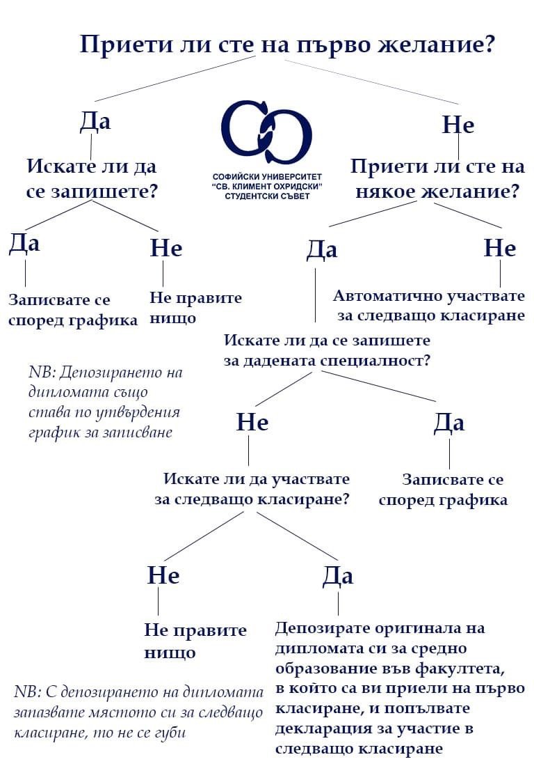 Лулумба, подавате заявление за участие във второ класиране. На място, защото трябва да оставите оригинала на дипломата. На второ класиране имате вариант или да мръднете напред или да останете на същата специалност. Ако мръднете напред, специалността от първо класиране отпада.