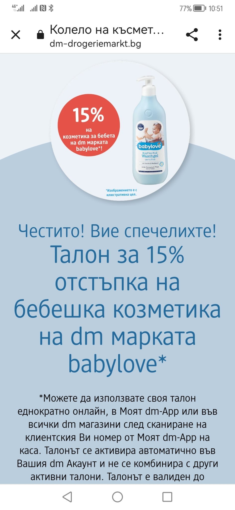 Освен това на мен ми се паднаха бебешки продукти с 15% отстъпка и няма да ползвам талона.