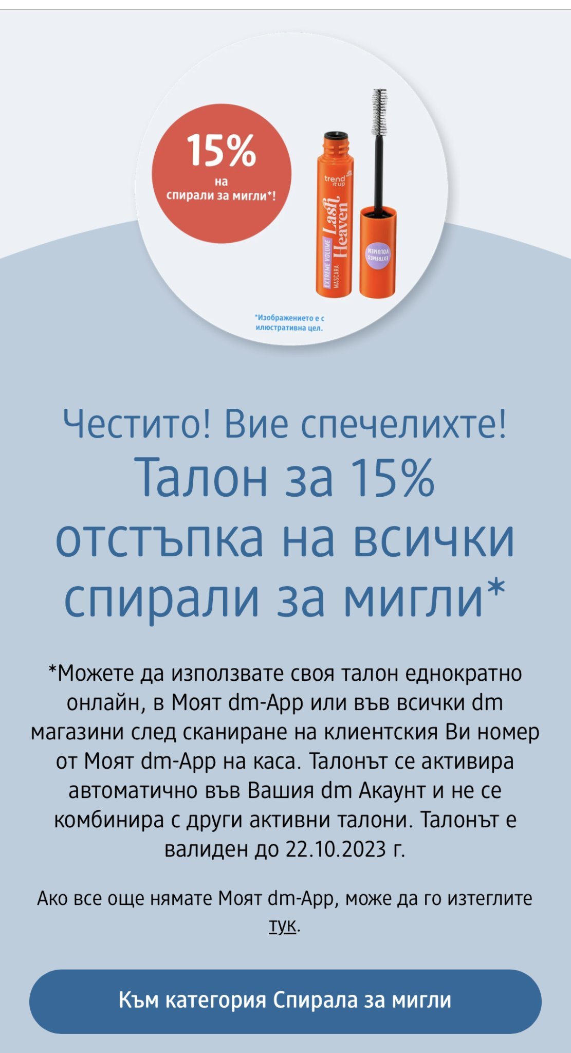 Падна ми се -15% за спирали, познайте коя точно ще купя. Но не я намирам в приложението на ДМ. Някой знае ли дали я предлагат и в кой магазин в София мога да я намеря?