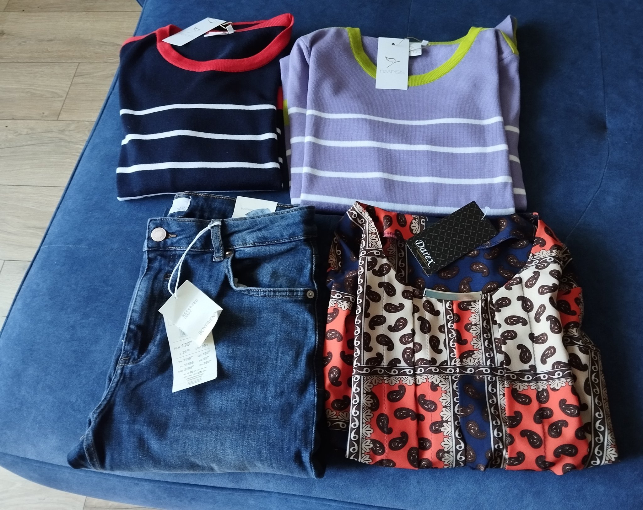 Дънки от Ризърв, пуловерчета от Франт и блузка от малък магазин в центъра на София.