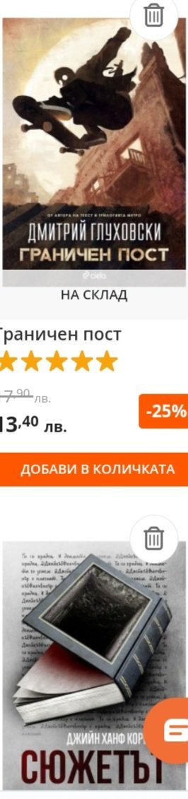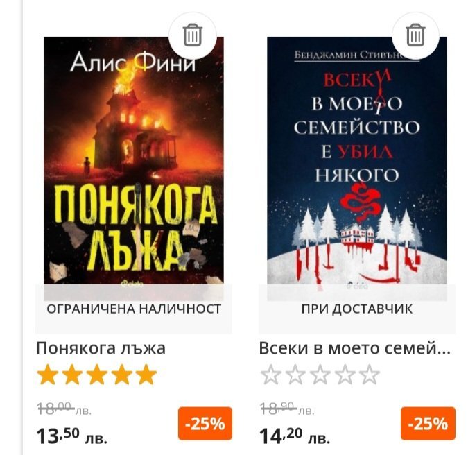Аз искам само една тяхна книга, щях да я взема с по-малко намаление от Озон. Ще мина през книжарницата, ако се окаже че не е намалена там, ще поръчам от Озон.
