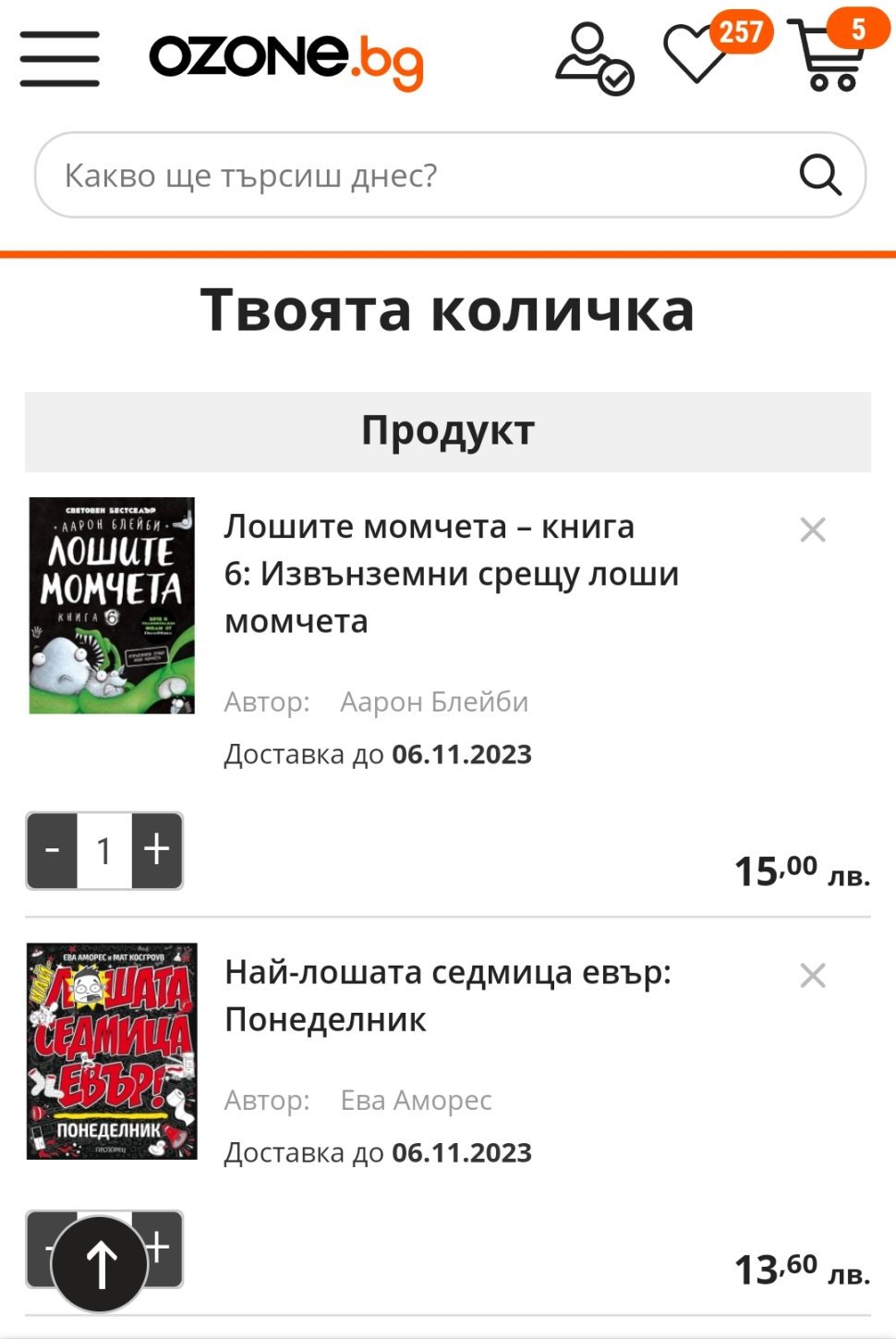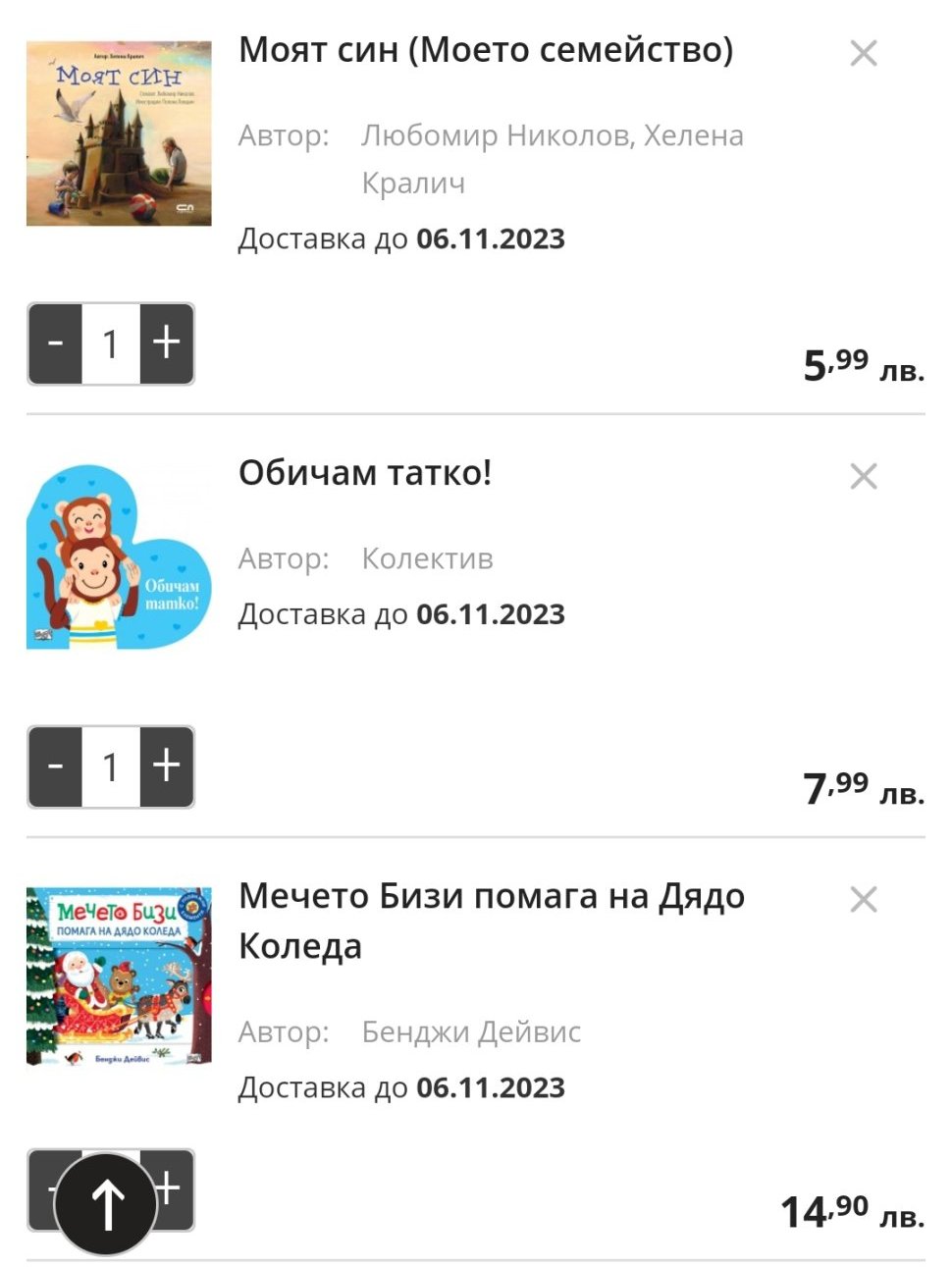 В листата на поръчката включва хелоуинската книга с намалената цена, а на книгите от офертата за деня на будителите - с редовната цена, на които слагат след това на ред “отстъпка” начислените -20%. На конкретните заглавия вижте по отделно какво се получава като отстъпка, на Робертино е 3 лв, а “хелоуинската” книга е с отстъпка 3.40 лв (пише на страницата на книгата, “спестяваш 3.40”, за нея), не е 5 лв. отстъпката.