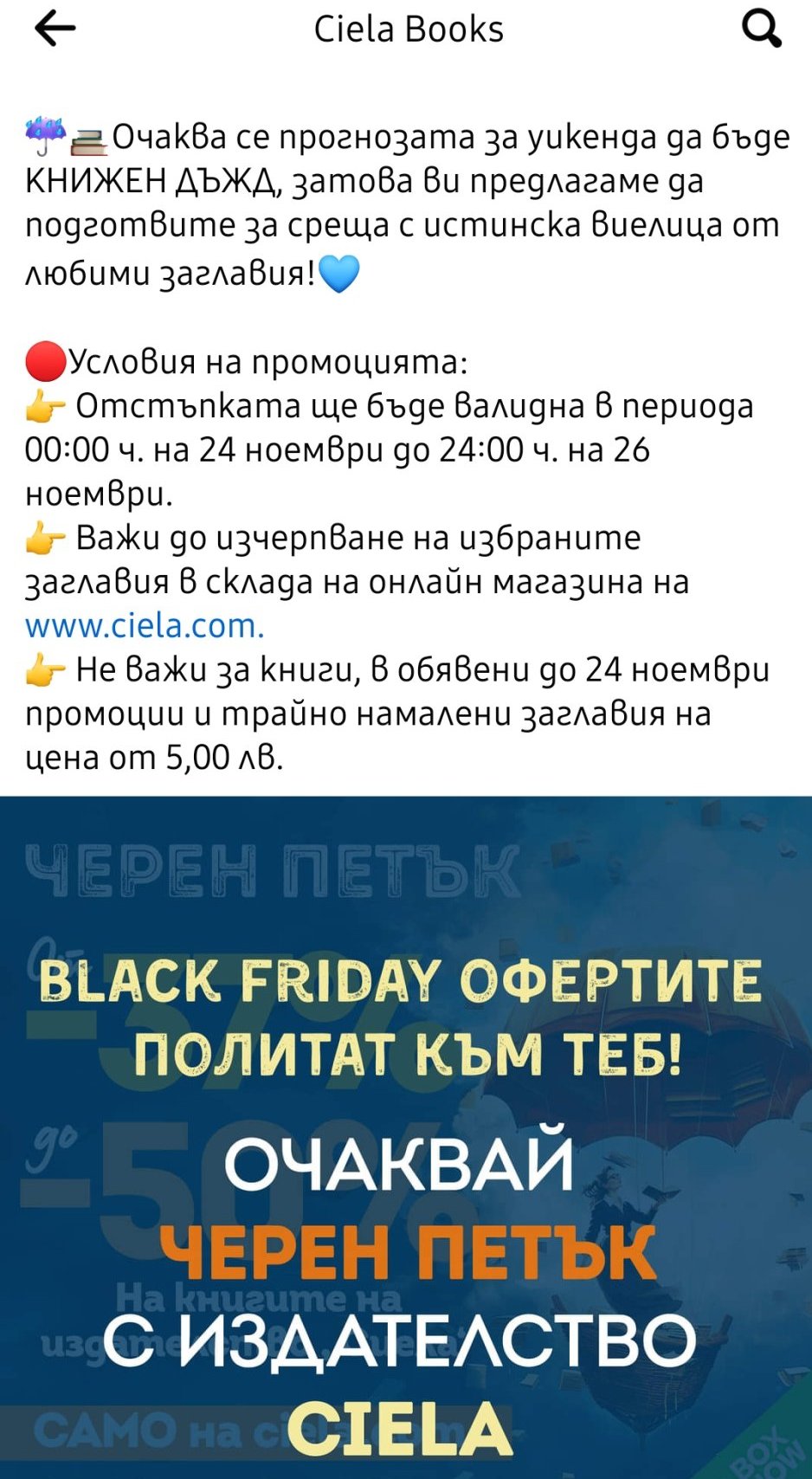 С първите 110 лв да им изплащам тъпата карта, ай мерси. Хич не ме спечелиха, ако отстъпката се формираше кумулативно от направените в сайта поръчки и не е само за една година...... може пък и да вземе да поръчам от тях, но  при наличичето на куп сайтове от които доставката ми е безплатна за по-ниска сума и не ме ограничава само до тяхното издателство /Сиела,Ибис, а и други продават не само тяхните си книги/