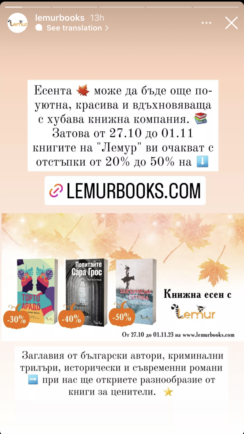 📚 30% отстъпка на всички книги на Издателство Миранда от български автори по случай Денят на народните будители от 27.10 до 03.11!