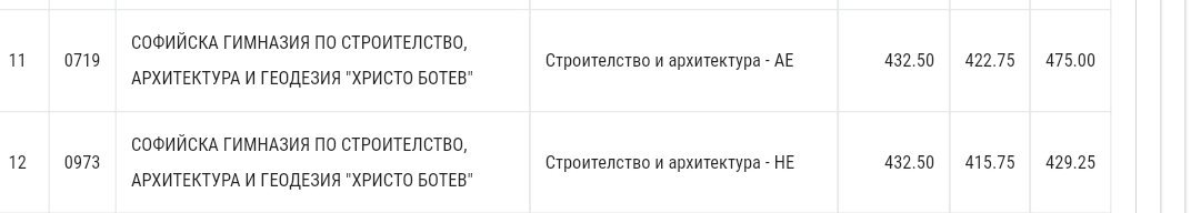 Здравейте, може ли някой да сподели минималните балове за София за Строителната гимназия, паралелка геодезия и Елисавета Вазова интериорния дизайн с немски, италиански и френски. Благодаря ви