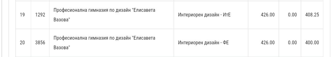 2 точки не достигаха за желания Итнириорен дизайн с италиански език... Сега последното дете е прието с бал 408.25 ... щерката е с 408 и е страшно разочарована... Остава си в Интериорен дизайн с френски език.
