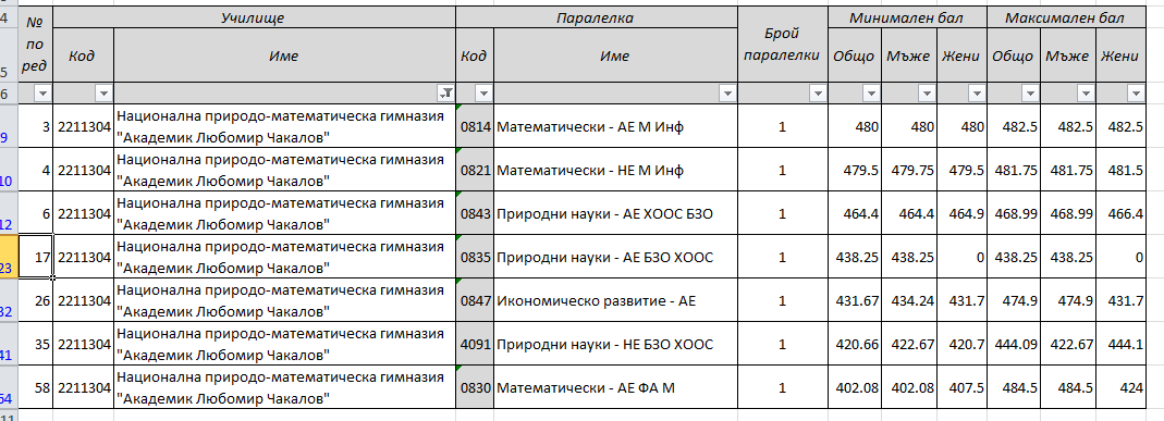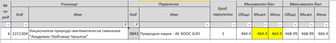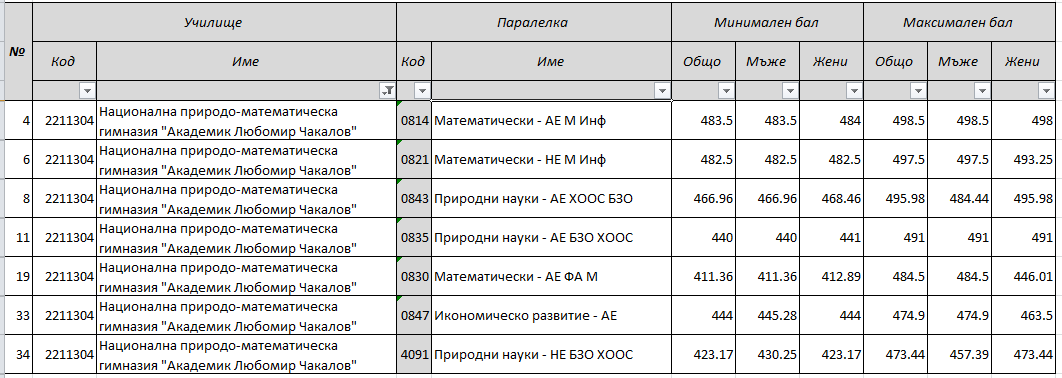 За да си проверите дали щеше да стигне, вижте изнесените статистики за Мин. Бал за паралелката, която сте искали