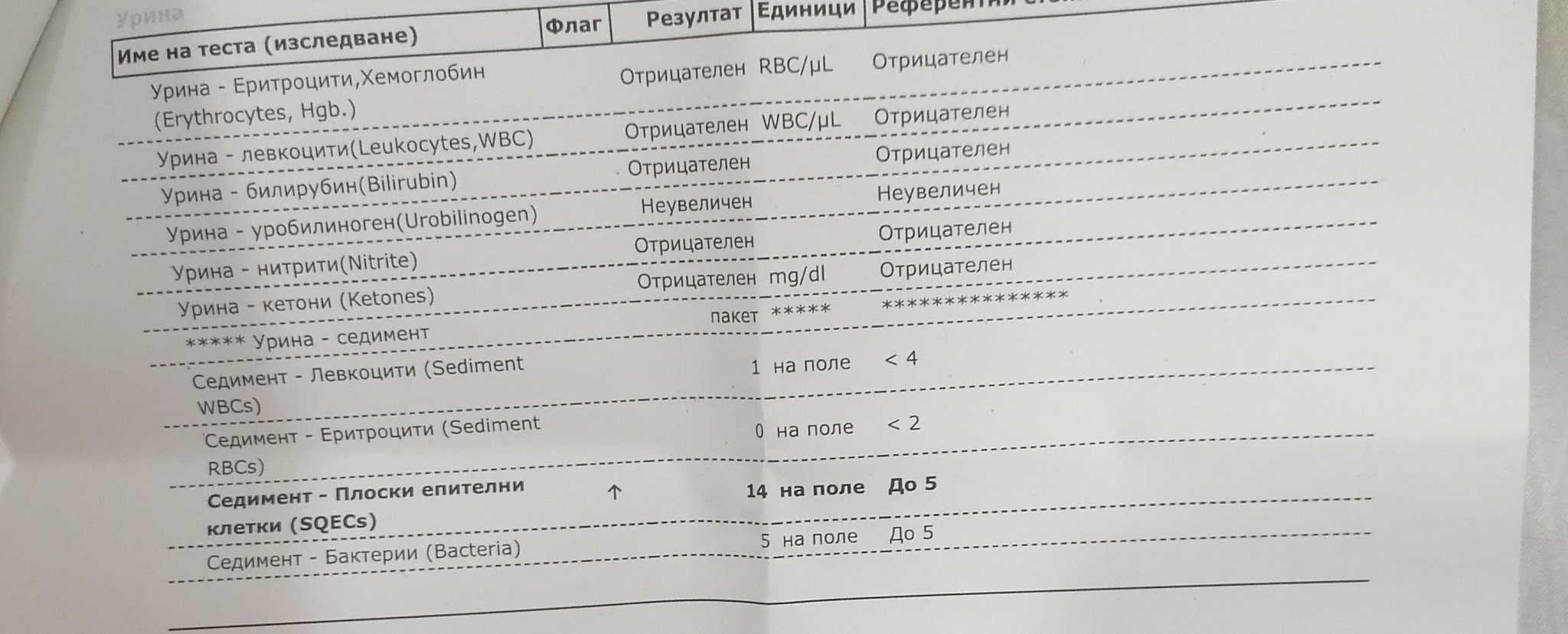 Здравейте. Днес пуснах урина. Имам високи стойности на плоски епителни клетки. Какво може да значи това и някакви насоки?! На 33г съм.