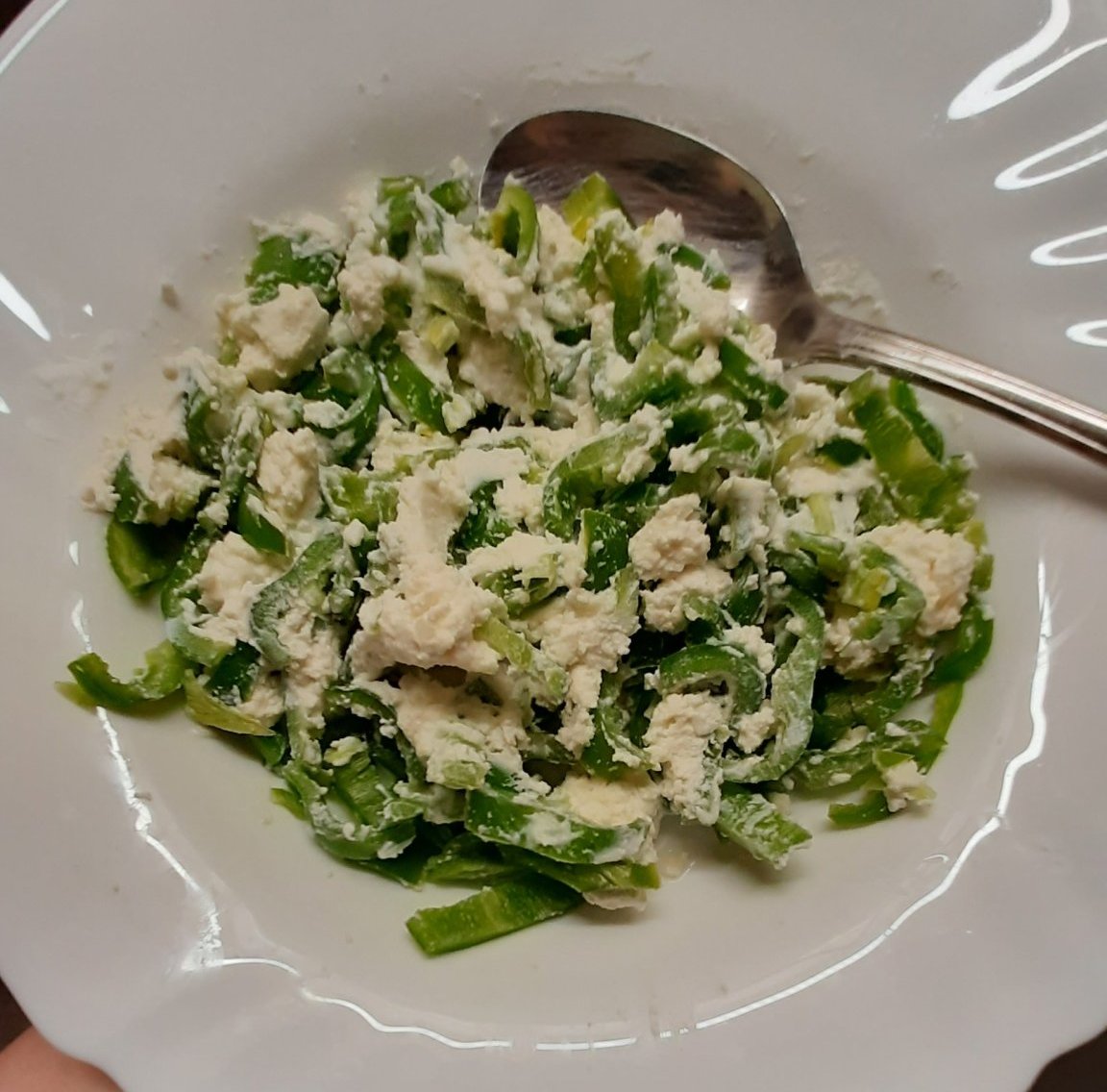 Вечерята беше маринована херинга, маслини и чушки с извара и рикота: