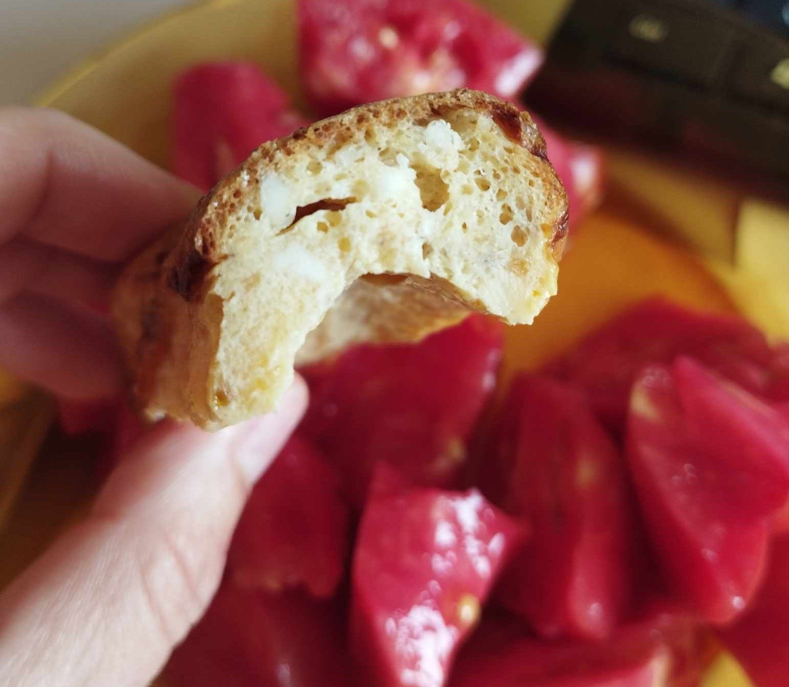 Аз вчера се канех да ви пусна снимка на чушките с яйца и сирене, които правих онази вечер, ама се отнесох. Беше ми останала 1 чушка и я взех днес за обяд, заедно с другите неща. Та, ако помните, бях казала, че сложих чаена лъжичка хуск, щото ми беше малко рядка сместа. Та плънката станала като хлебче Laughing