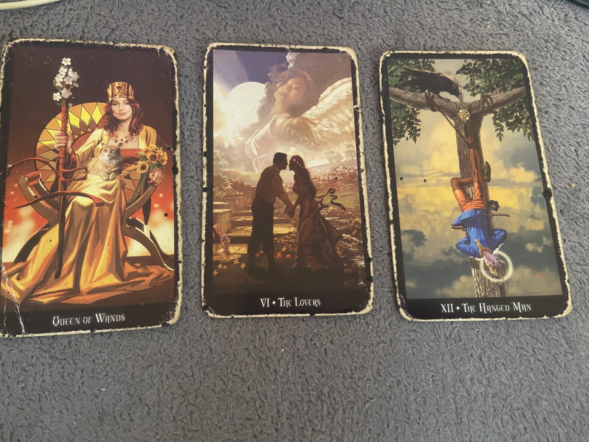 Картите са Кралица жезли Любовниците Обесения