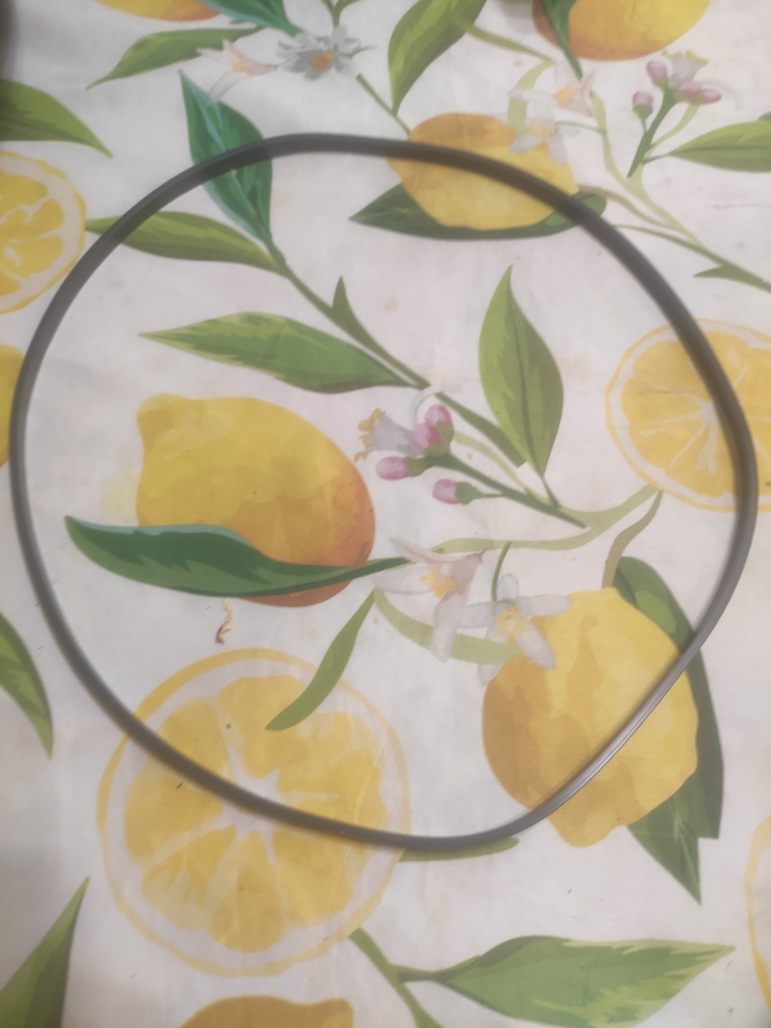 Първо проверих гумата на тенджарата под налягане, но тя е много по-светъл цвят, по-малък диаметър, много по дебела и със жлеб посредата, а тази гума е плоска. Дори да допусна, че се е разтегнала от топлата вода, не ми се вярва да се е променила чак толкова много (все пак тенджарата под налягане доста се загрява и тази гума издържа на топло).