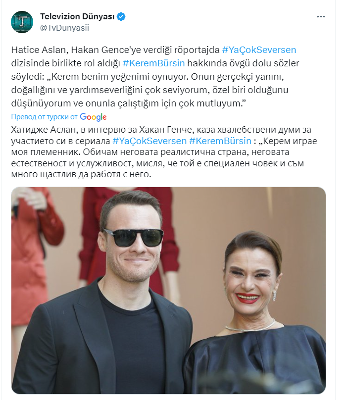 Относно евентуална връзка между Серенай и Керем. Много ми не ми се вярва. Мисля че е поредната  жълта клюка папараците затопляне в сензация.