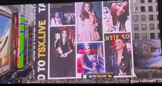 "Феновете добавиха видеоклип на #HandeErçel, нейните проекти и нейните награди на билборд на Таймс Скуеър в Ню Йорк"