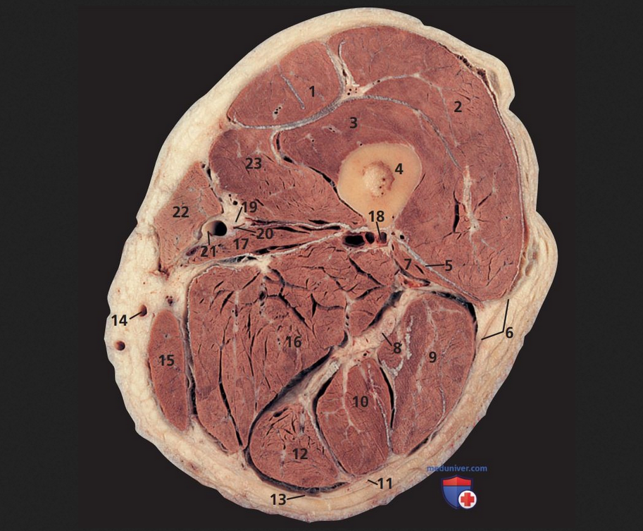 Аз пак да кажа - написаното от Магдена е вярно - реална опасност за живот не е имало. Ето снимка на напречен разрез на човешко бедро. Вижда се къде са артериите, къде са мускулите и колко е мастната тъкан под кожата. Та ако макетният нож се настрои на половин и даже на 1 см острие разрезите ще са само в зоната на подкожната мазнина. И проблемът е, че или няма такъв текст в закона, или не е посочен, но става дума за изтезание, за многократно и в продължителен период нанасяни болезнени рани. Но дали в  закона няма определение за такова изтезание, или по друга причина е гледано формално не знам. Иначе ако два часа я беше бил с гумен маркуч щеше да има само кръвонасядания и затова обвинението трябва да е по друг член. И въпросът е защо не е - заради дупка в закона или по друга причина.
