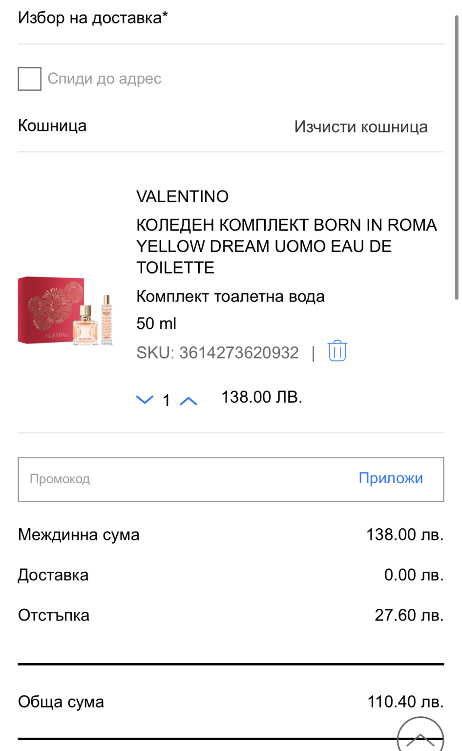 Излиза 72,25 лв за 100 мл, без доставката.