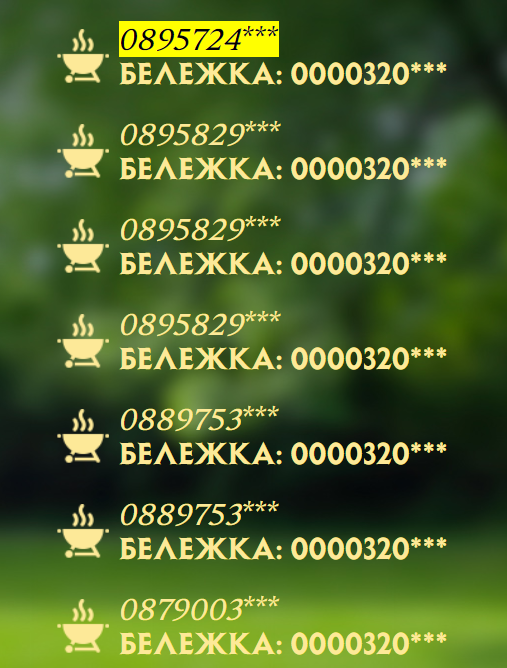 Веднага погледнах списъка и ми се набиха в очите някои номера на телефони и бележки. Проверих голяма част с търсене ctrl+F и видях, че някои ги има по над 10 пъти. Разбирам ако някое семейство си е взело поредни тел. и покупките са направени една след друга, но няма как 0896610***  да са десет различни номера и да са участвали в Шуменско, като на повечето от тях и кас.бел. да  е с един и същ начален номер. На всичкото отгоре на 4-5 различни тел. има касови бележки с еднакви начални номера, както и преди е коментирано да кажем, че на 6 номера се регистрират по 10 бележки и така вероятността за печалба е огромна и имаме 60 регистрации.