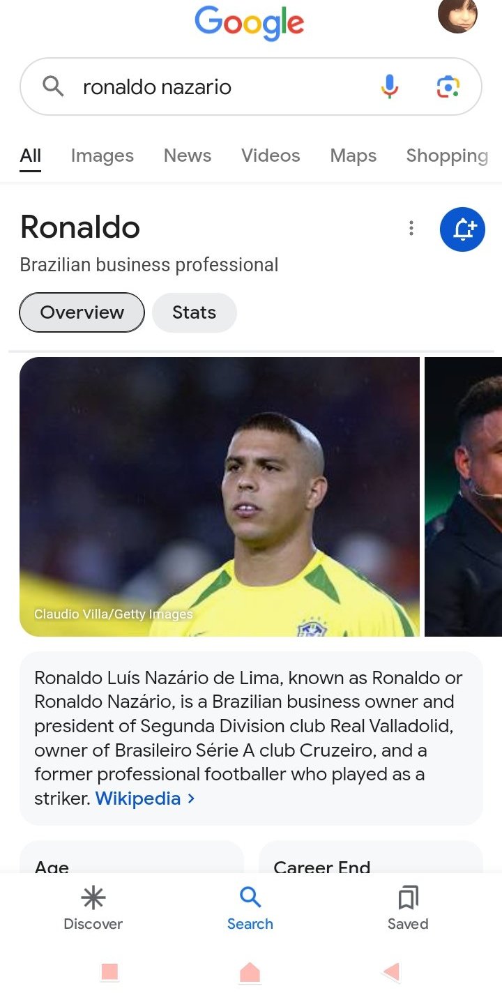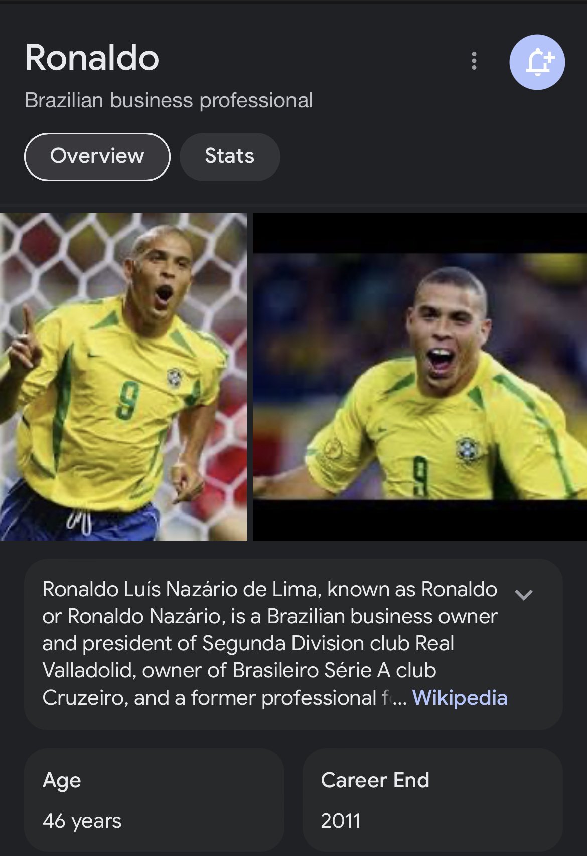 Разбрах, разбрах, не е сегашния Роналдо, а друг. Може би за да се избягват грешки трябва да се изписват с двете им имена.
