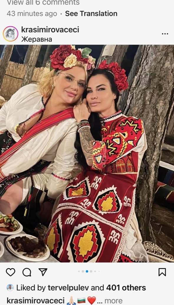 Майко мила...ц-ци като любеници преливат от фустаня, джуки нацървени, татуси на некви дзверове сигурно, на фона на прекрасната носия. На тия пач-ври трябва да им се забрани да се докосват до български реликви. Ей там в дубая да ходят да връткат джуки.