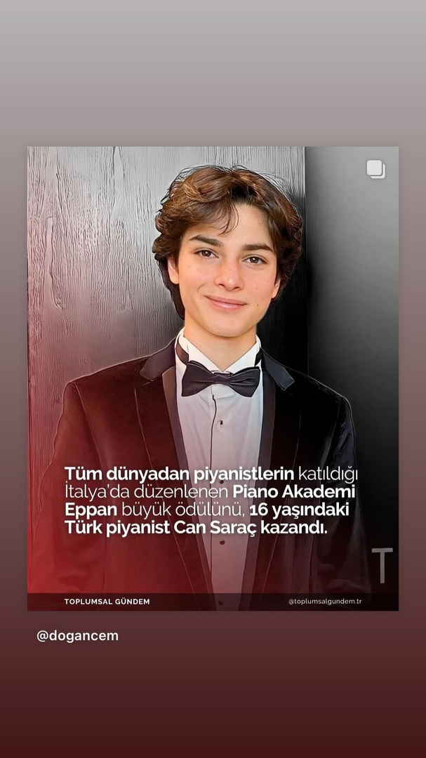 Главната награда на Piano Akademi Eppan бе присъдена на 16-годишния турски пианист Джан Сарач.