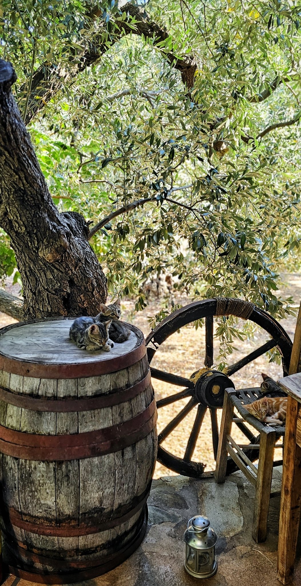Една кривичка снимка от видео (заради лещата на GoPro), но за обща представа. За любителите на дивото. Децата не искаха да тръгват: смес пясък и камъни, за аква обувки е. Така че от Лименария не бих наела лодка втори път, особено въпросните. Не ни е интересно да ходим на натъпкани плажове с лодка. Да обясня какво търсим, ако търсите това и вие. Обичаме по-диви заливи. Къщата беше разкошна, в маслинова гора. Три къщи в огромна ферма. Нашата беше най-усамотена. Имат рехава ограда и стават за кучета, допускат домашни любимци. Handmade Farm House в Airbnb. Но много оси и стършели в двора от ранна сутрин. Спиралите за комари ги гонеха, ако не ядем. На лодката пръсках със спрей за комари и осите изчезваха. Вечер след 20 часа ставаше рай в двора, изчезват осите. През деня децата си играеха в двора, но винаги бях нащрек. Хитрувах като хвърля месо малко по-далеч от двора, за да отиват там осите. Действаше. Собствениците на къщата продават и техен зехтин. 40 евро, 5 литра. Още не сме го опитали. Обичам го този остров, всяко ново посещение е различно и магично. Любимите ни котенца от къщата. Много ни допадна къщата, само не ми допадна, че макар усамотена е близо до пътя и се чува постоянно бръмчене от АТВ и коли: