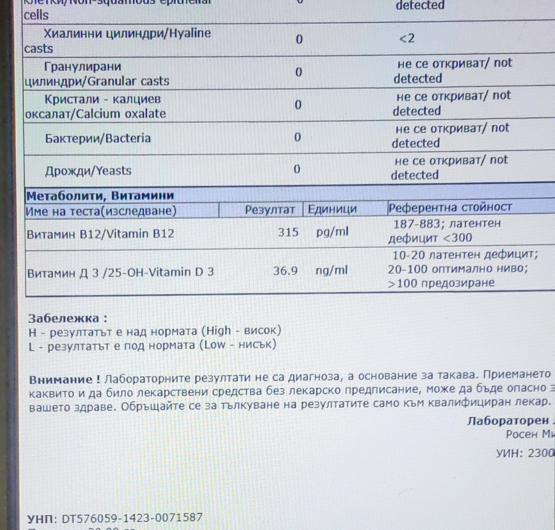 Референтните стойности от лабораторията за вит. Д са 20,60 - 50,00. За "над 20 ng/ml - достатъчно, препоръчителни нива - над 30 ng/ml"