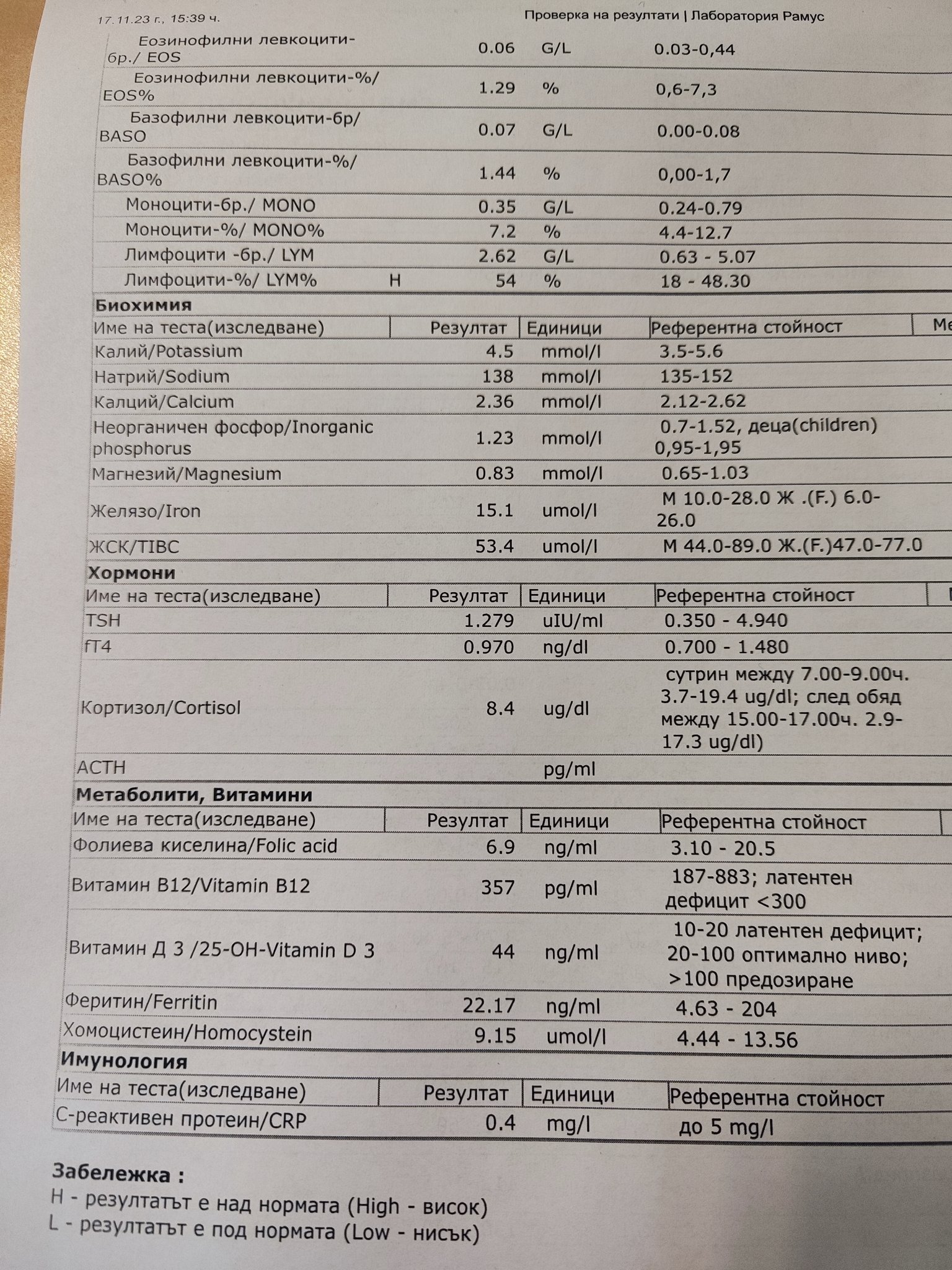 Това са ми последните резултати,след поставени три инжекции и почивка от един месец, мислех че ще са по-високи стойностите. Поне вит Д ми е повишен след морска почивка октомври. Може ли да коментирате резултатите. За първи път пускам хомоцистеин, фолиева и феритни, не знам точно каква им е ролята