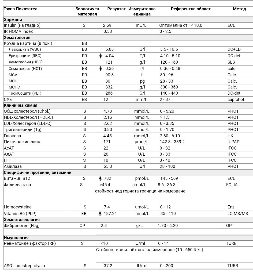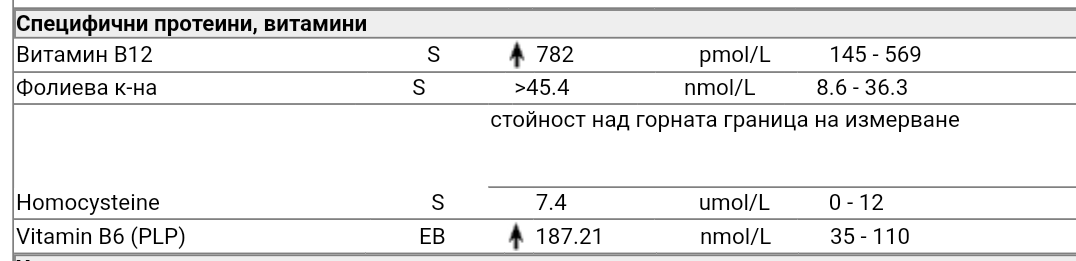 Аз като гледам всички В-та са високи и фолиевата и тя е, някакви витамини приемали ли сте преди изследването?