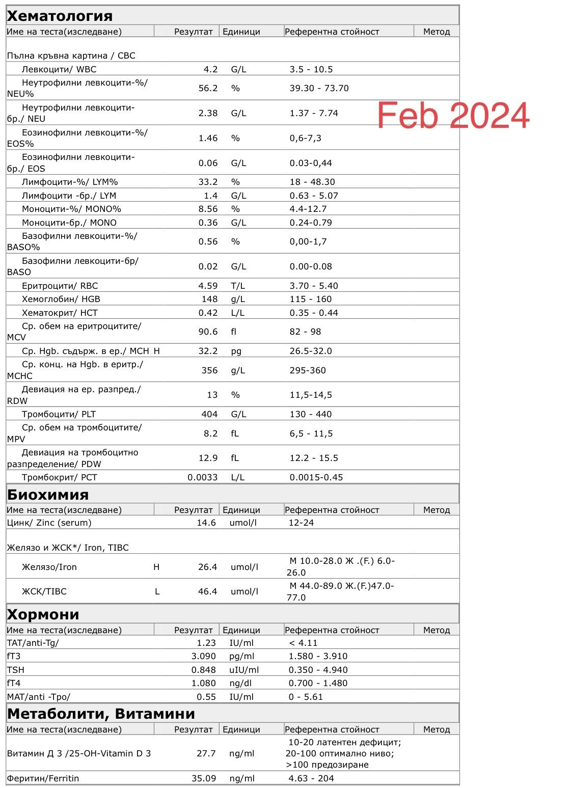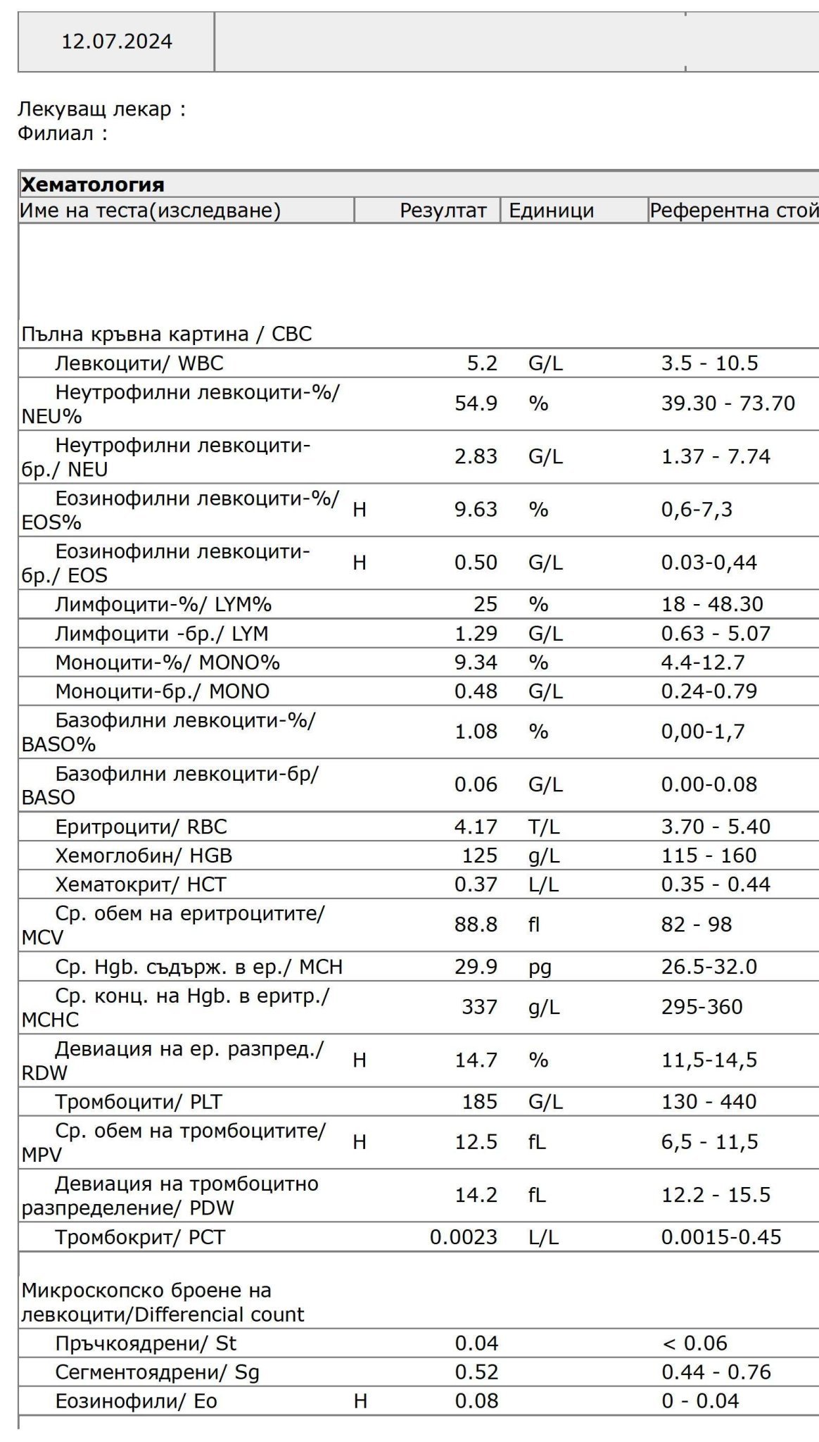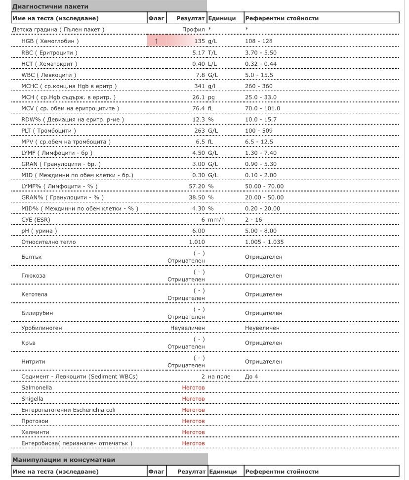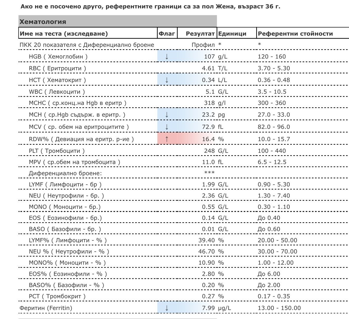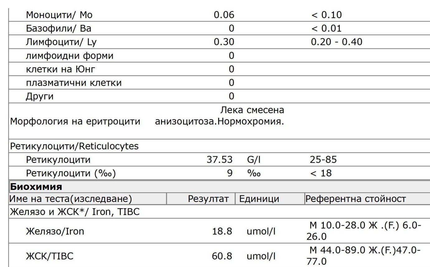 Още юни месец като изпратих резултатите на ЛЛ, каза да се пека на плажа и ще се оправя и не коментира нищо относно хемоглобина.