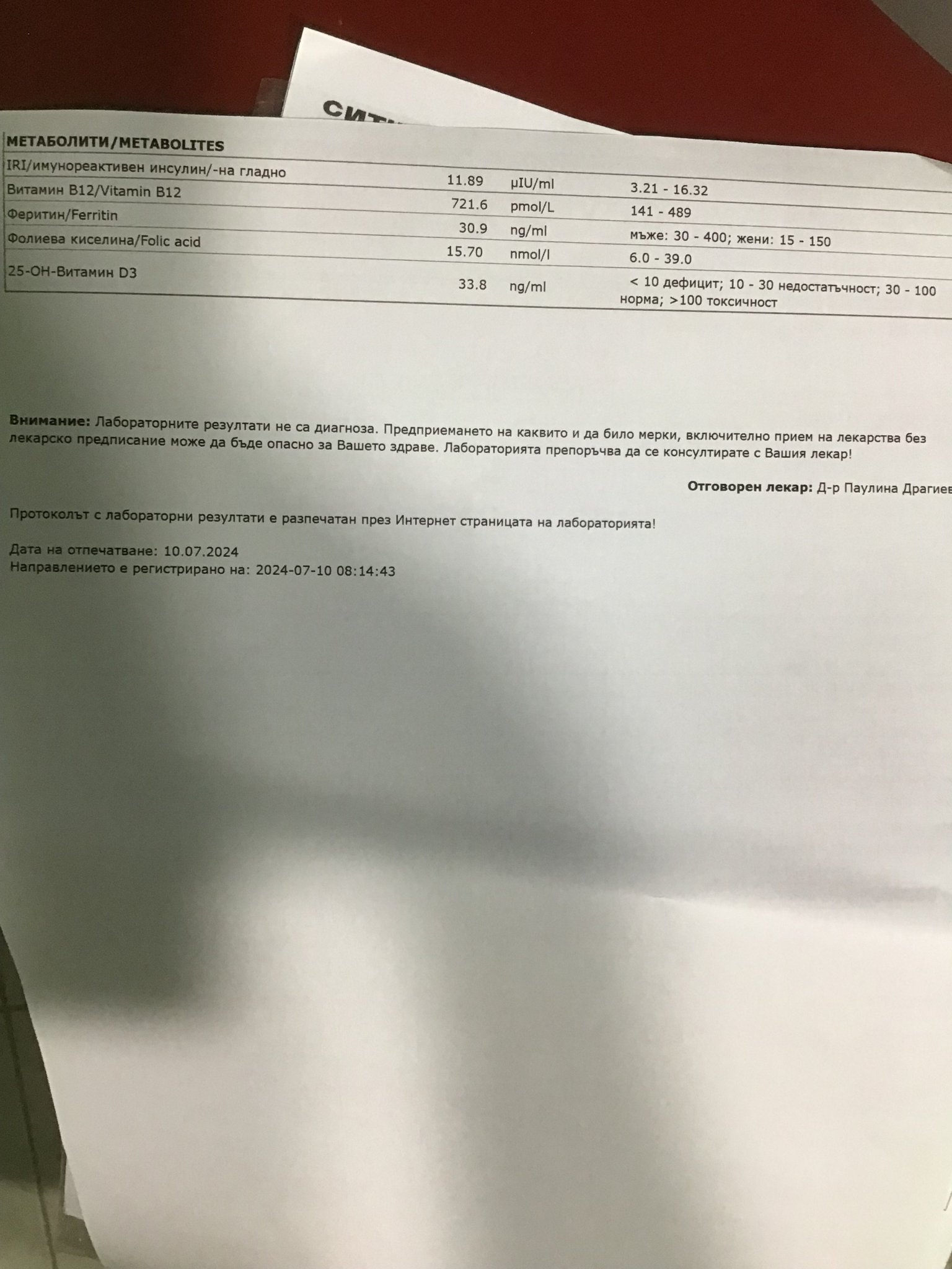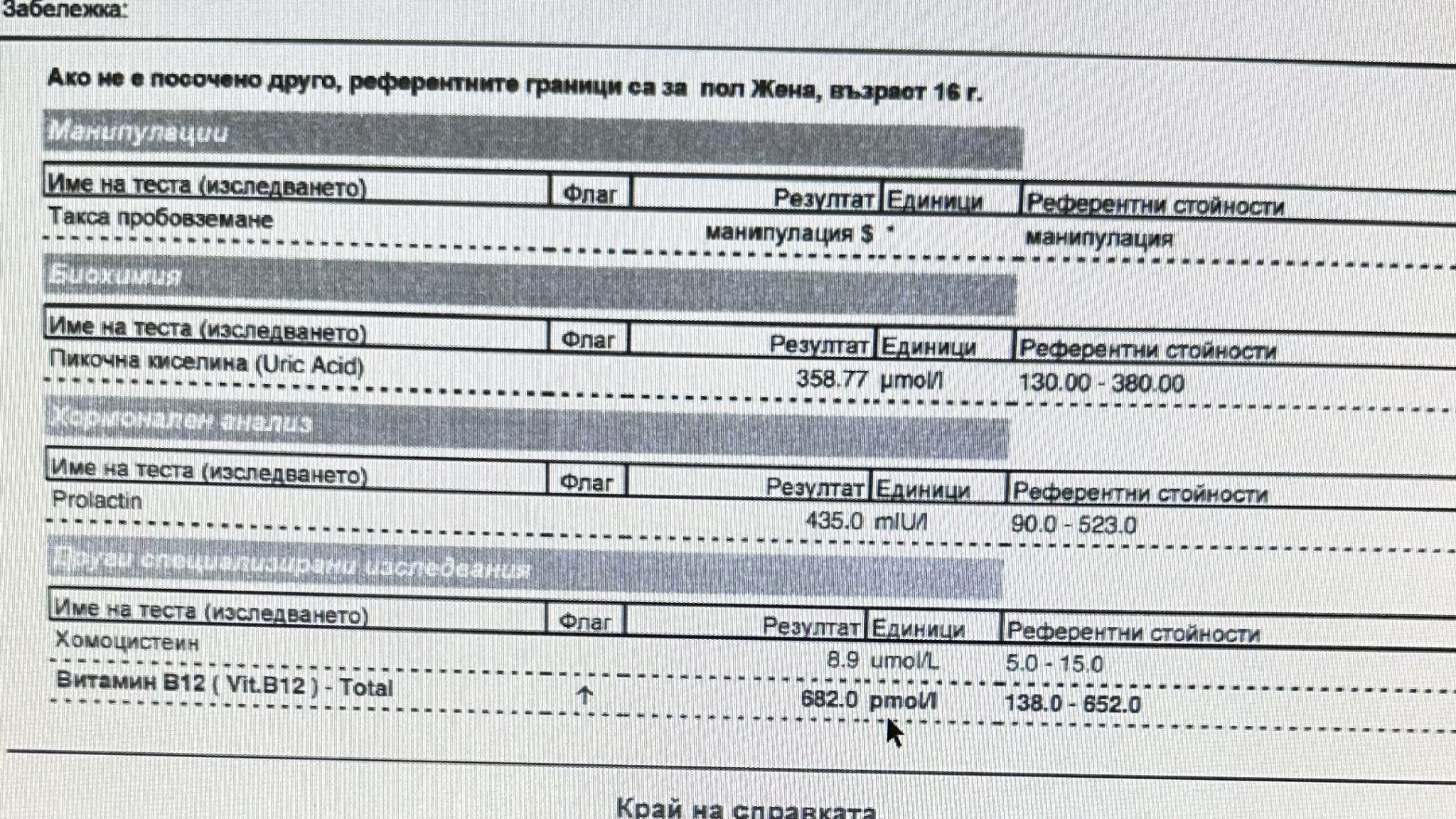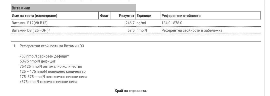 Качвам и изследване от следващия ден от друга лаборатория. Стойностите се различават от предходните, но въпреки всичко е пак висока стойността на В12.