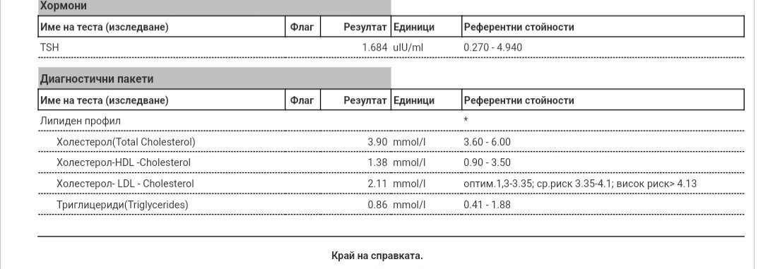 Здравейте, след продължителна проява на симптоми като умора, раздразнителност, дори лека депресия, реших да пусна профилактични изследвания.
