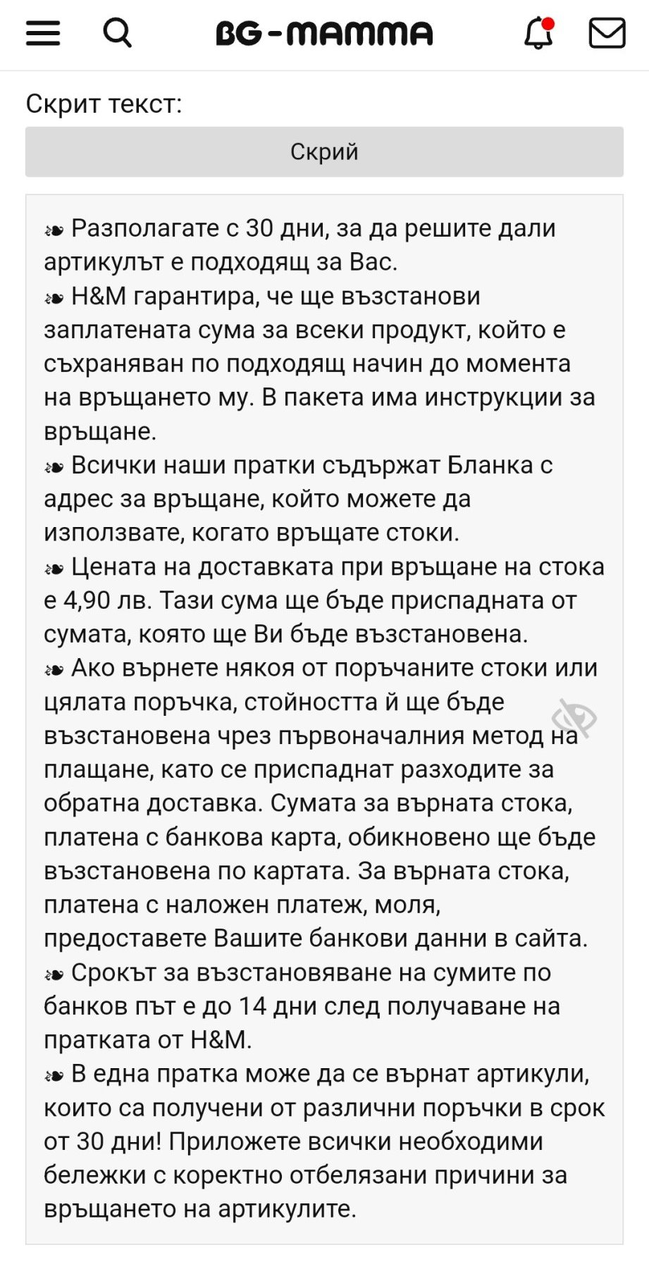 Смяна не може. Връщат по карта, ако си платила с карта. Ако е наложен платеж, независимо дали с карта, или кеш, връщат по сметка, която си попълнила в профила. Всъщност, не съм плащала предварително, да не те подведа. Плащам при получаване.